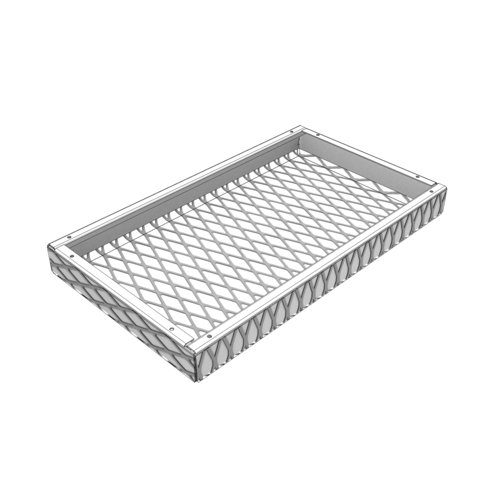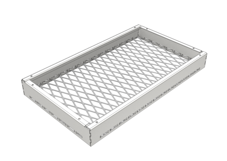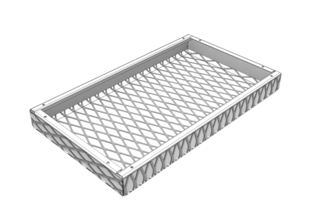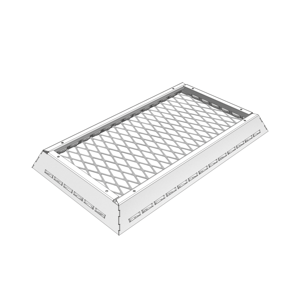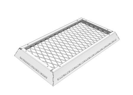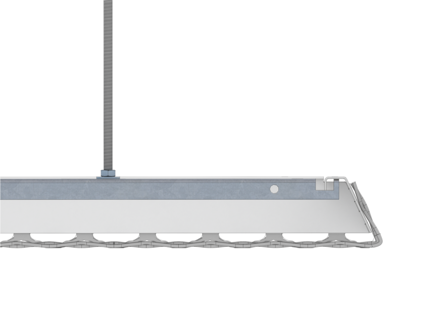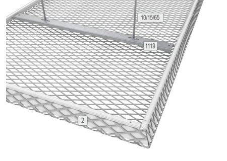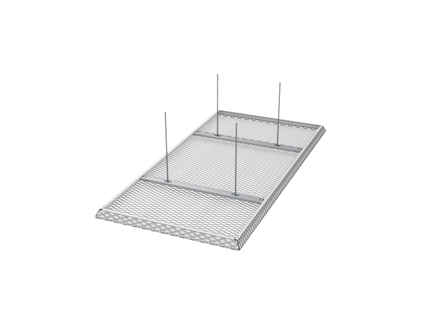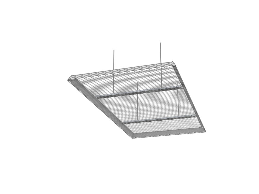 The LMD-St 320 expanded metal canopy ceiling is characterised by its versatile design options. As a single canopy, it can be arranged freely in the room and can also be realised with 90° or 65° turn-ups as well as with different mesh types, shapes and sizes. This canopy ceiling impresses with its modern look, simple installation and tool-free revision options. Independent installation of luminaires and fixtures is possible between the expanded metal canopy ceilings.