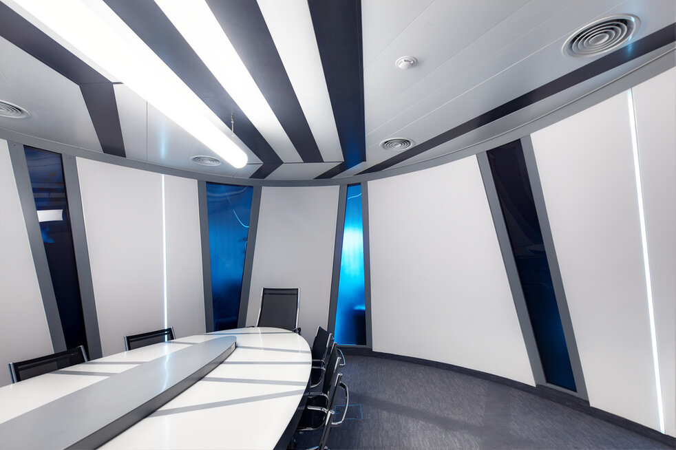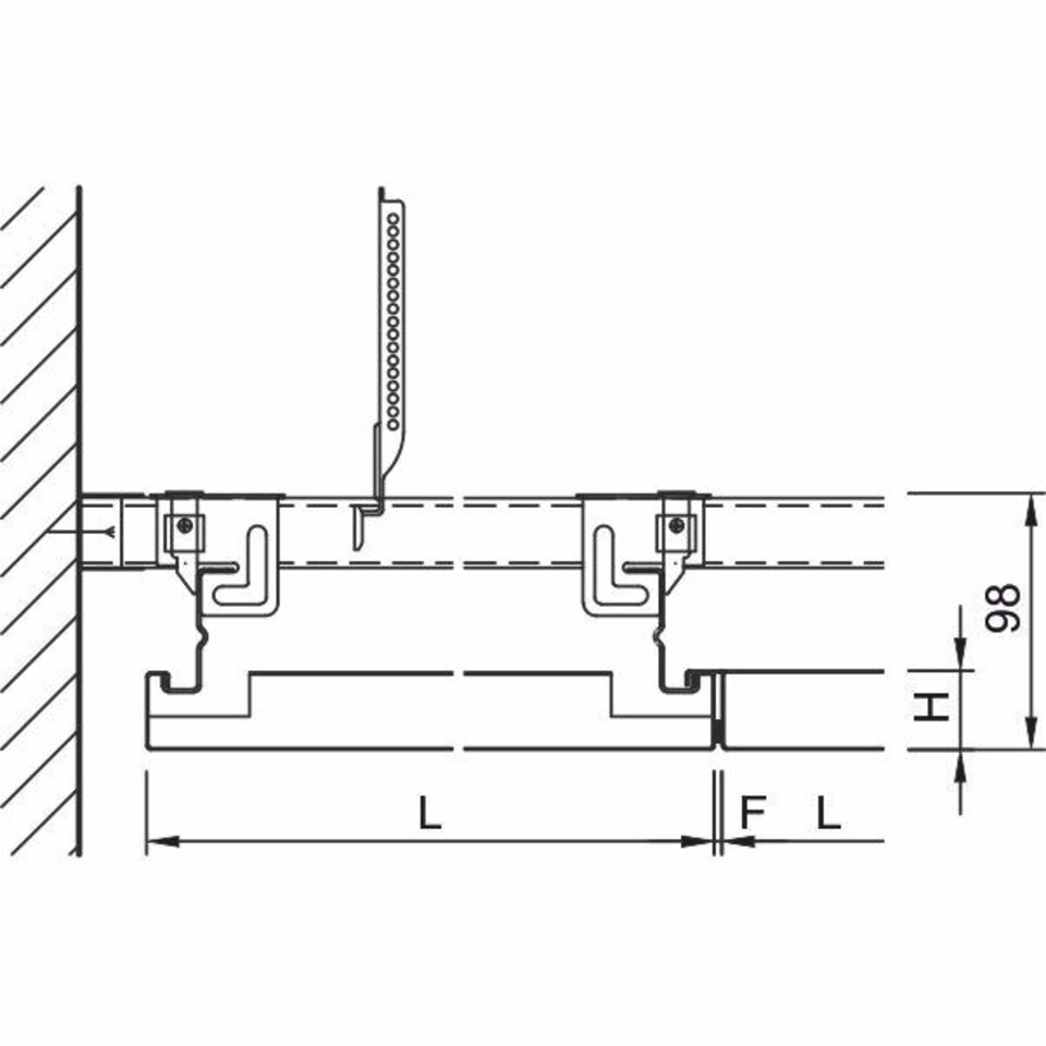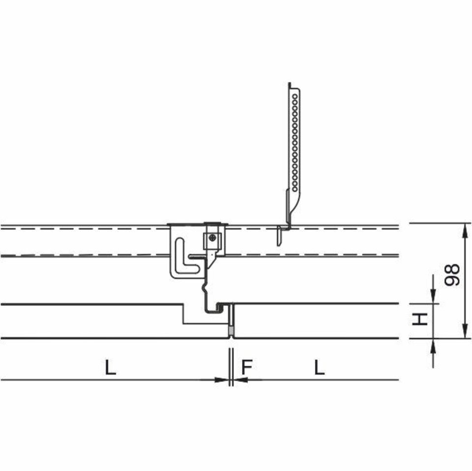 The system LMD-E 200 creates a homogeneous ceiling surface with concealed substructure by means of overlapping Hook-On ceiling panels. This robust and economic construction combines appealing visual with ease of maintenance: the shape and size of the ceiling panels can flexibly be designed according to your wishes. Moreover, the panels can be removed without the need for any tools.