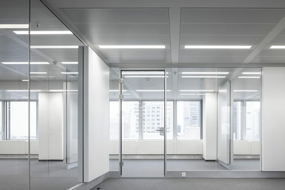 The GTB 10 offers a clear, frameless look that ensures high transparency and modern style. Customize the glass door to your liking with foils, screen printing or enamel to create a unique and personal design. Especially in combination with our fully glazed partitions, such as the Lindner Life Clear or Lindner Life Pure 620, it becomes a visual highlight.