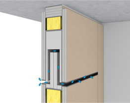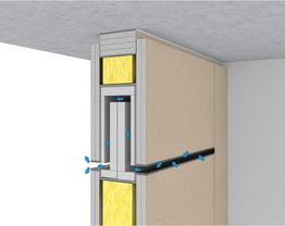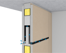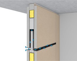 To install a transfer element in a drywall system, the metal substructure must be adapted. This substructure can consist of either standard UW profiles or reinforced UA profiles. The transfer element, including all necessary seals, is precisely fitted into the wall opening and then screwed in place together with the wall cladding.