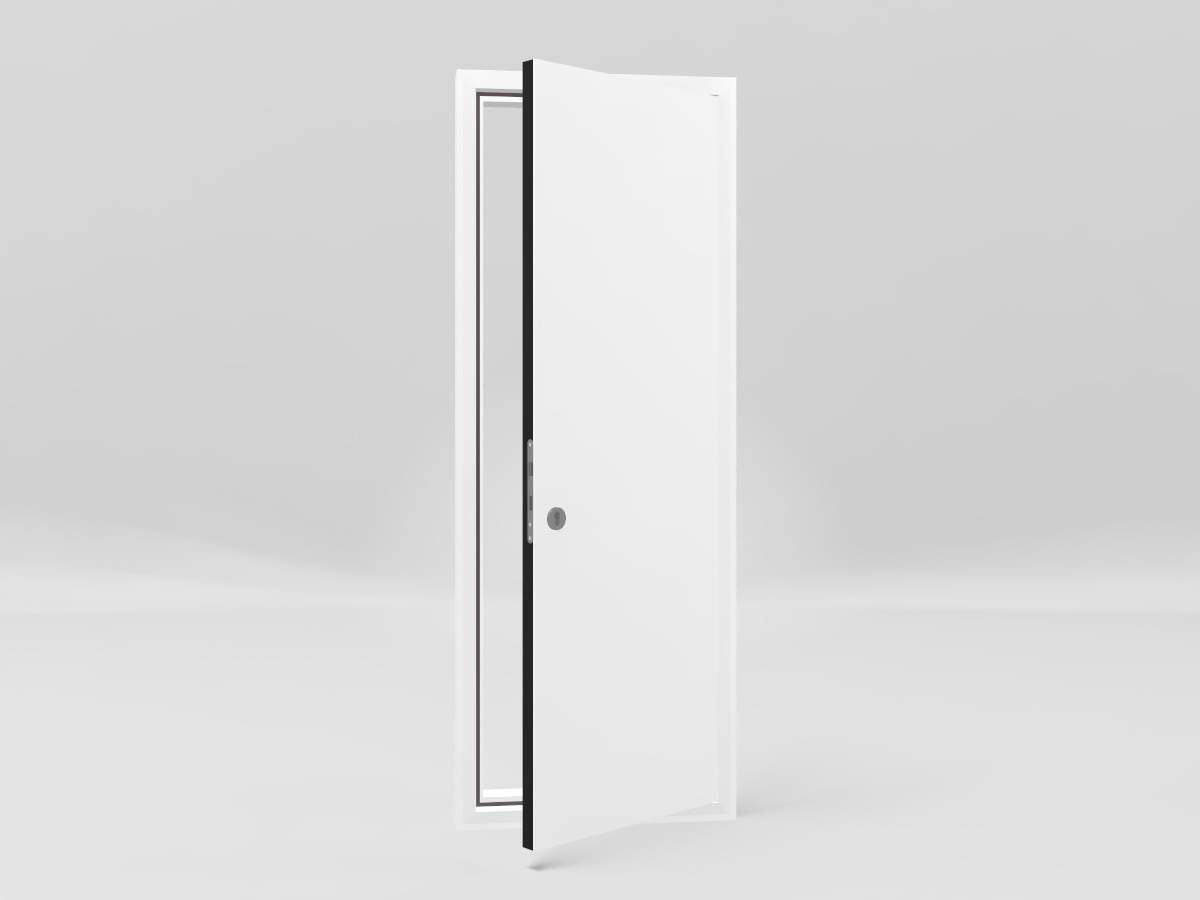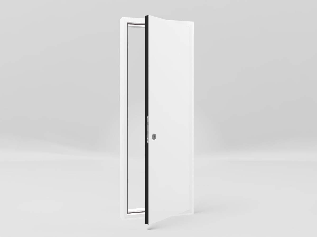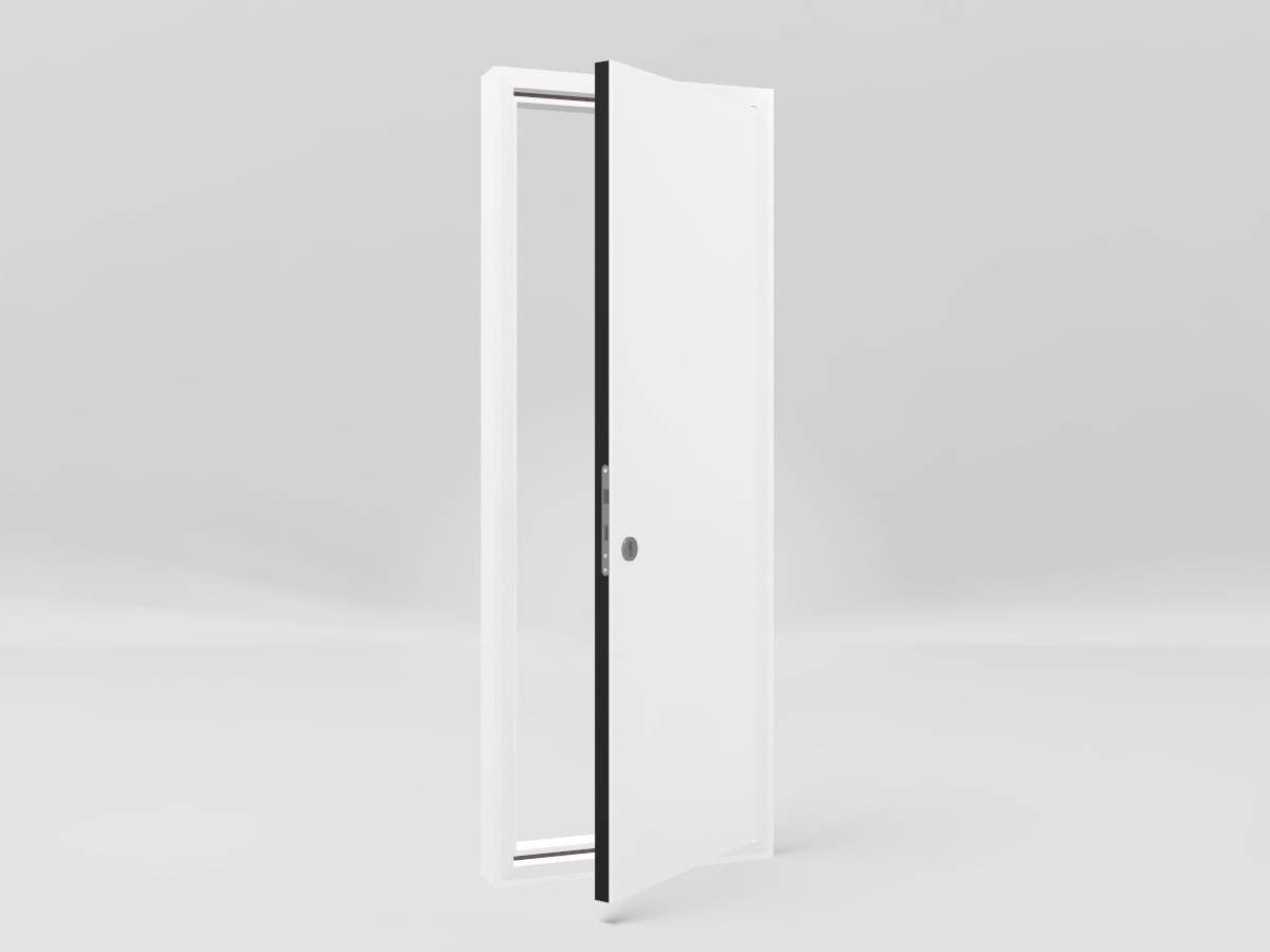 The large-format Lindner Fireshield I 90 inspection door closes openings in service shafts securely: It keeps smoke and fire within the shaft for over 90 minutes. Individually for you, we produce Fireshields in all sizes and formats and up to a maximum outer frame dimension of 2,109 mm width x 2,579 mm height. We offer both, single-leaf and double-leaf inspection door elements for your construction project – with symmetrical or asymmetrical door leafs. There are hardly any limits in terms of surface design either: Fireshield is equipped with a special primer finish as a standard. Moreover, you can choose from HPL surfaces, veneers and RAL lacquers. If required, the inspection door can be adapted seamlessly to the installation shaft wall.
