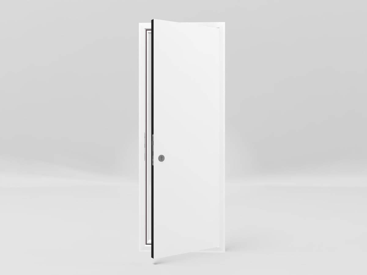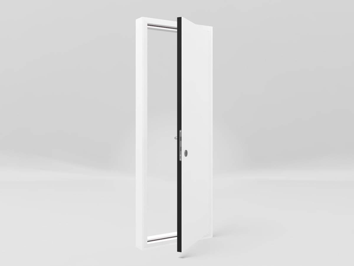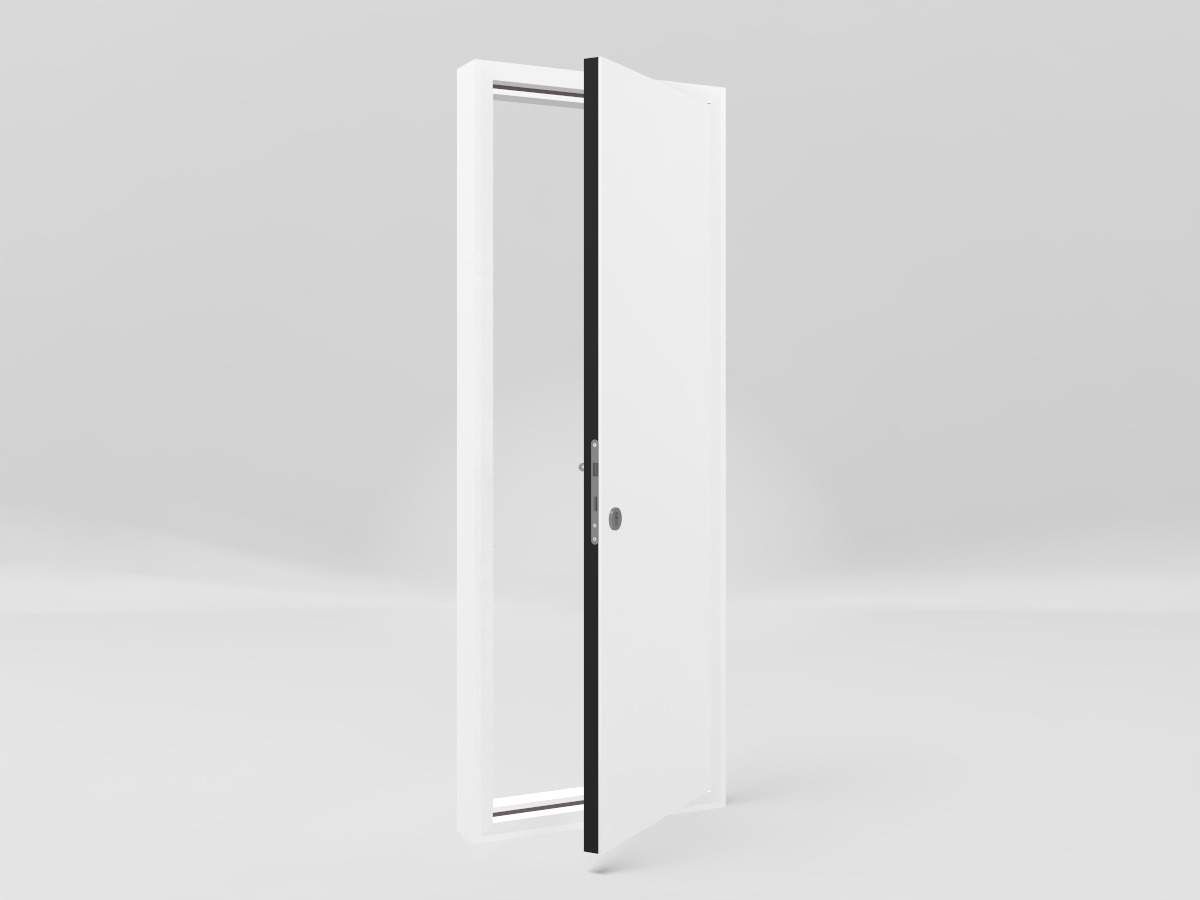 The large-format Lindner Fireshield I 90 inspection door closes openings in service shafts securely: It keeps smoke and fire within the shaft for over 90 minutes. Individually for you, we produce Fireshields in all sizes and formats and up to a maximum outer frame dimension of 2,109 mm width x 2,579 mm height. We offer both, single-leaf and double-leaf inspection door elements for your construction project – with symmetrical or asymmetrical door leafs. There are hardly any limits in terms of surface design either: Fireshield is equipped with a special primer finish as a standard. Moreover, you can choose from HPL surfaces, veneers and RAL lacquers. If required, the inspection door can be adapted seamlessly to the installation shaft wall.