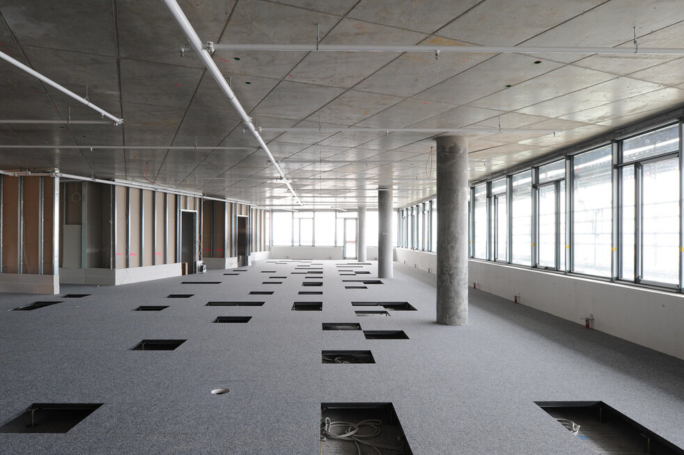 The perforated raised floor panels type acoustic consists of a calcium sulphate panel core, a qualified floor covering and optional acoustic fleece or acoustic element on the lower side of the panel to regulate the room acoustics or optimise the degree of sound absorption. The panels are applied with HF on the lower side.