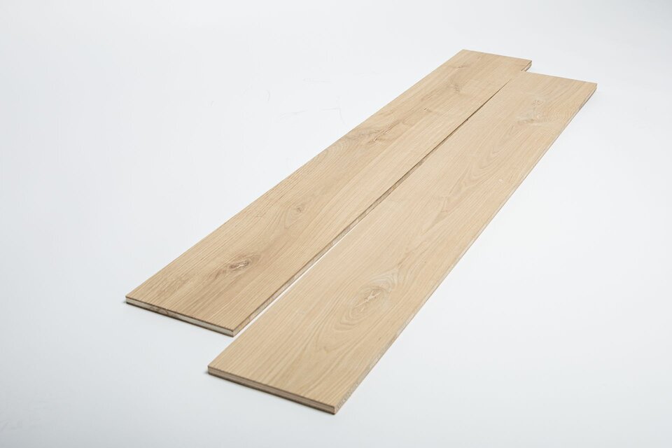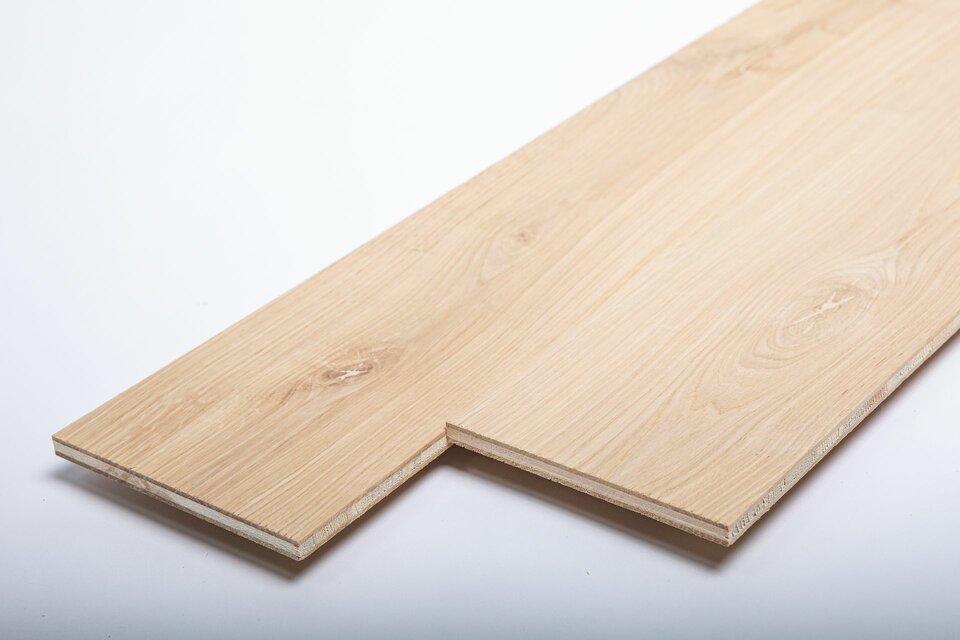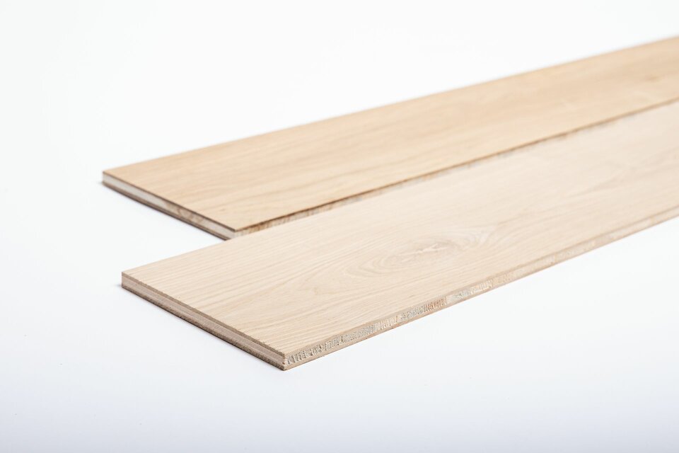 A raw plank is a pre-product for the manufacture of a parquet flooring in accordance with DIN EN 13489. The production depth can be selected as required. The lowest depth of production is a 3-layer glued raw plank according to the dimensions requested by the customer. The blank is sharply cut on one long side for profiling. The following options are available: - Defects filled with 2K polyester filler (putty colour according to customer requirements) - Knotholes repaired with foreign knots - Surface sanded