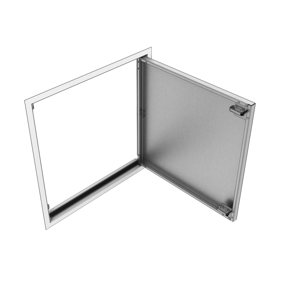 The inspection hatch can be flush integrated into a wall panel or installed later with an external frame. In order to ensure the highest possible level of tightness, the inspection hatches are fitted with a surrounding seal. To close the flap, you can choose between a lever lock cylinder or a spring snap lock.