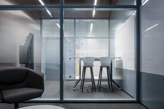 Due to the possibility of integrating blinds, the rooms can be easily transformed into isolated meeting areas or be dimmed for video presentations. Furthermore, the high sound insulation values of the partition ensure a calm working environment without noise pollution and thus, facilitate undisturbed working.