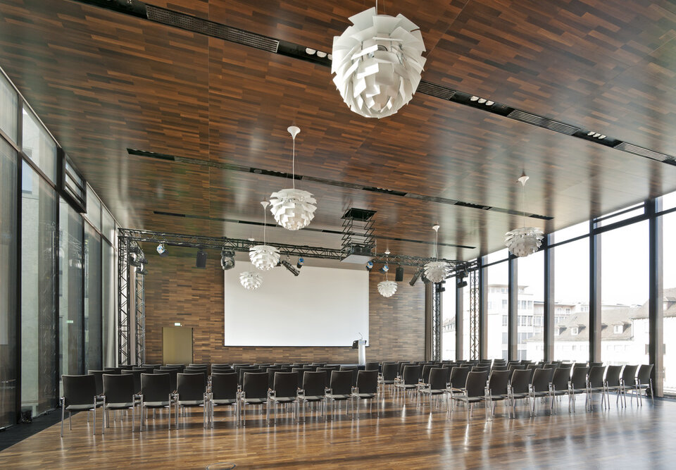 Combining aluminium and real wood veneers is demanding, but does not pose a challenge for us. With noble, micro-perforated veneers, our lightweight panel COMPwood gives your rooms a warm and pleasant atmosphere.