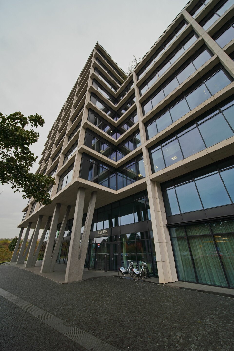Minimalistic lines and an unconventional architectural design characterise the Aspira Business Center in the new business district in the southwest of Prague. 15.000 m2 of rentable office space and around 1.000 m2 of retail space are spread over ten floors. With a high technical standard, the building offers a pleasant working environment and blends harmoniously into its immediate surroundings. The Aspira Business Center is also the only building in the Czech Republic to have been awarded a two-star green construction certificate.