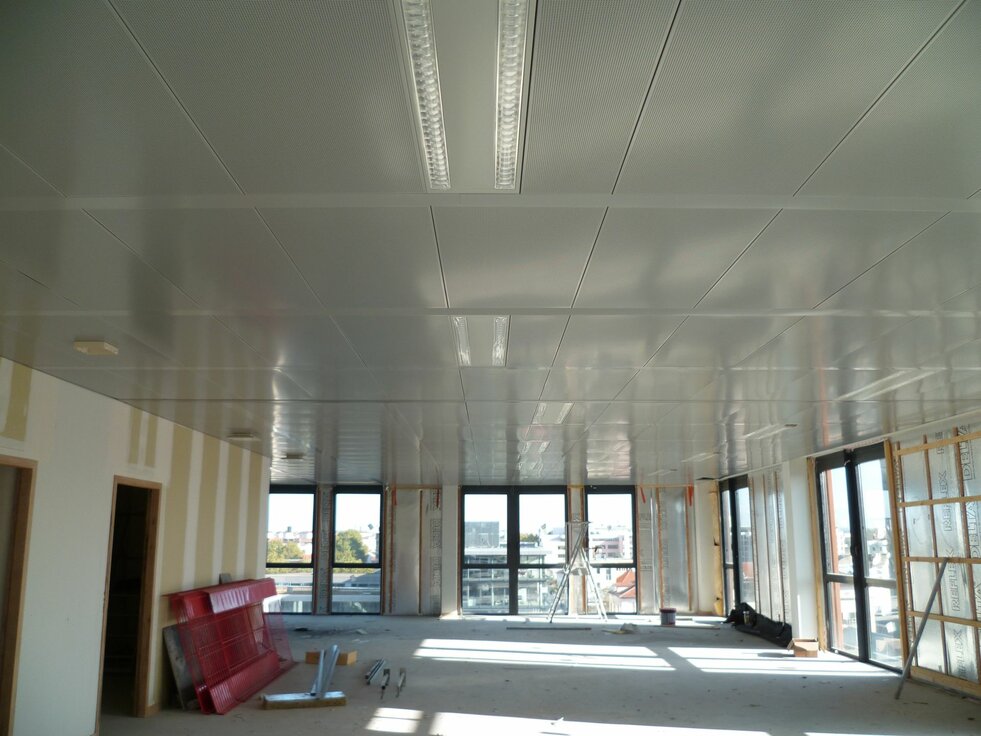 The 7-storey, 8,500 m² building is home to the French national employment agency Pôle Emploi. It is also the first low energy house of that size situated in Lyon and certified to French energy standards PEQA-BBC. Our Plafotherm® Heated and Chilled Metal Ceilings fully embrace the concept by naturally regulating the room temperature.