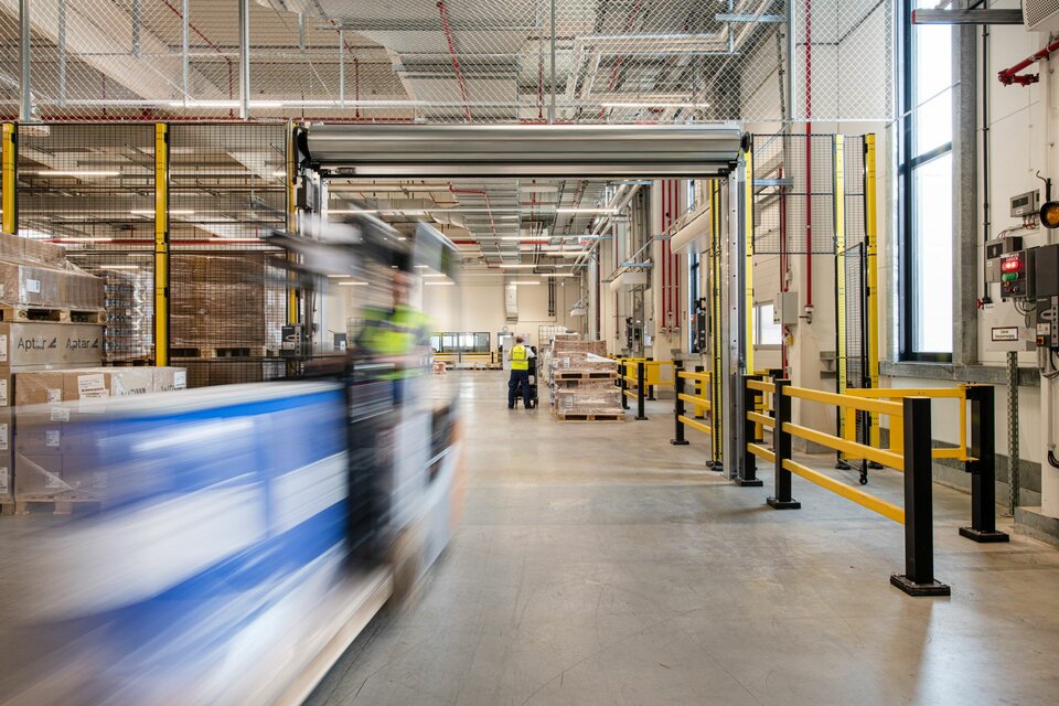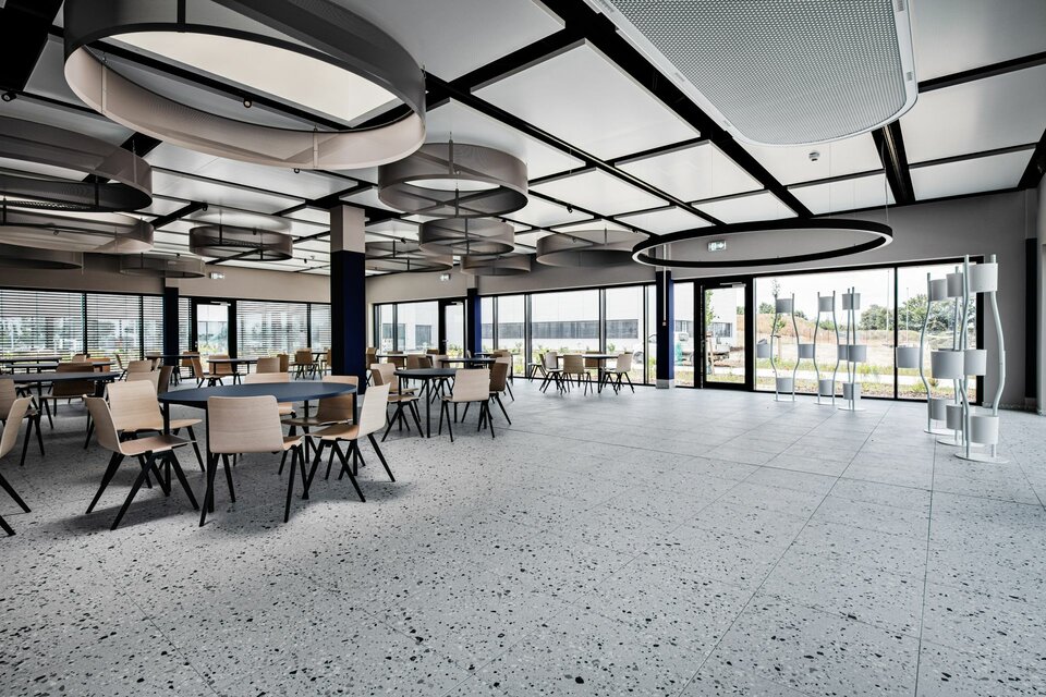 As general contractor, the Lindner Group was responsible for a wide range of fit-out work on this project. In addition to the office building, the focus was on the production areas: To transform the plant into a modern and functional centre, the Lindner team carried out floor coatings according to the Federal Water Act as well as dry lining and painting work and assembled high-quality interior glazing, including Planum. For the production and laboratory areas, Lindner installed system partitions, doors, free-standing cubicles and a walk-on ceiling in the Line 100S Type 2 variant – the completely enclosed walk-on level makes installations and the media routing particularly easy to maintain. Steel doors, fire gates and high-speed gates provide access to the various production areas. The production plant is complemented by effective extinguishing water barriers, Loading ramps and truck docking stations, ram protection and clean run mats. Another special highlight is the floor in the high-bay warehouse: Thanks to a Superflat magnesia screed, the floor is particularly even – ideal for the modern high-bay racks. Lindner also took care of the planting in the office areas of the building and the complete kitchen equipment, including refrigeration cells. With the successful completion of this project, Lindner has made a significant contribution to establishing the new Beiersdorf plant in Leipzig-Seehausen as a flagship site for modern and sustainable production architecture.