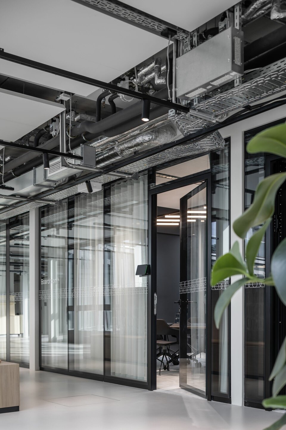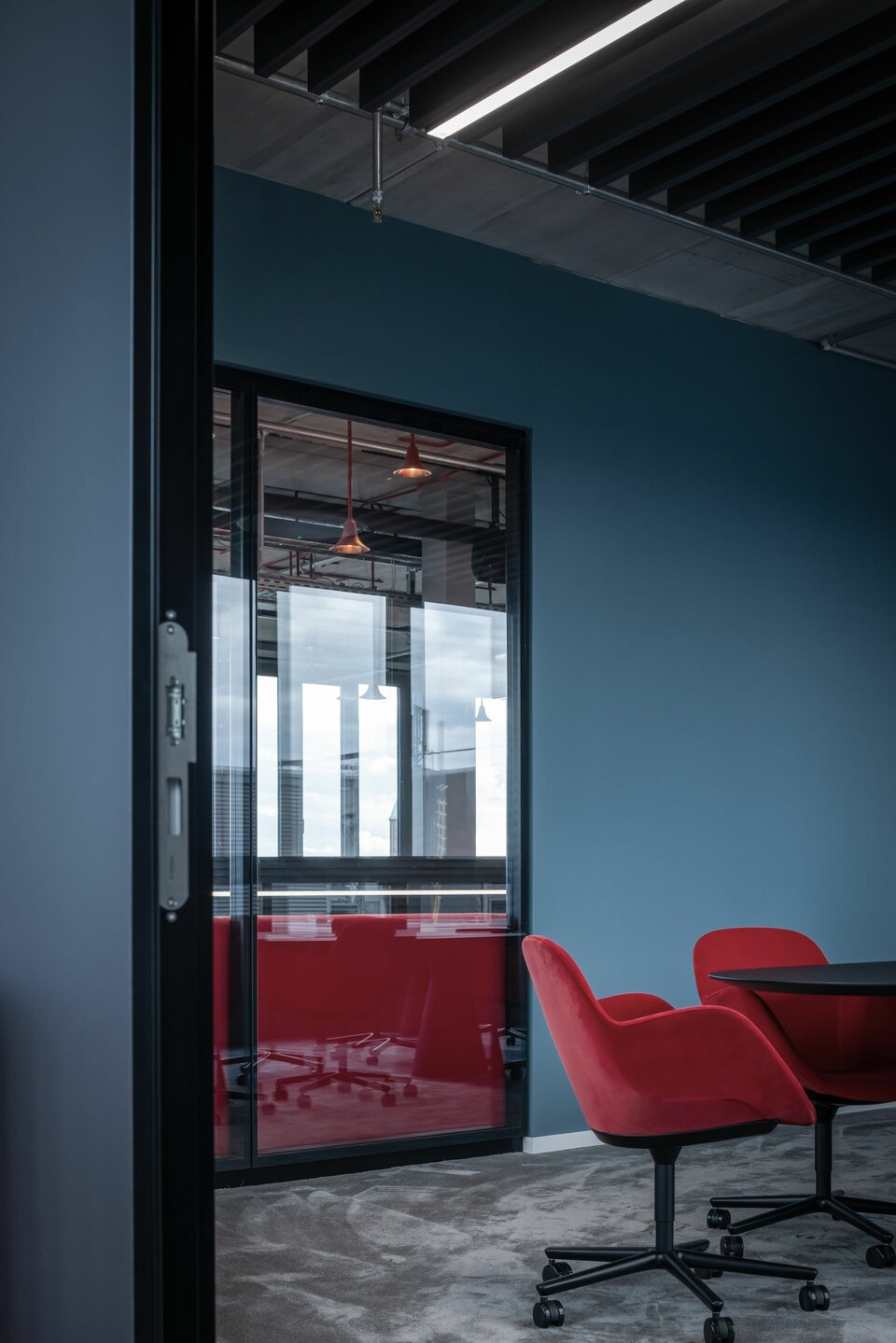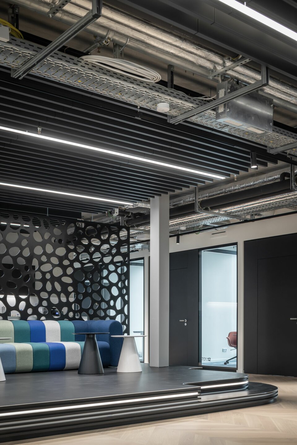 The Lindner Group played an important role in the revitalisation of the fifth, sixth and seventh floor with their divisions ceiling and walls. CBRE Design Collective itself was responsible for the interior design on the sixth floor. Focus of the remodelling was the arrangement of various small and medium-sized conference rooms: sound-insulated glass and metal partition walls provide the necessary division and acoustics and form a transparent and open finish to the front towards the hallways. Round glass elements in the partition walls are an additional eye-catcher while elegant wooden and glass doors underline the design. Thanks to the installation canopy and heated and chilled ceilings in slat optics, efficient temperature management inside the building is also ensured.