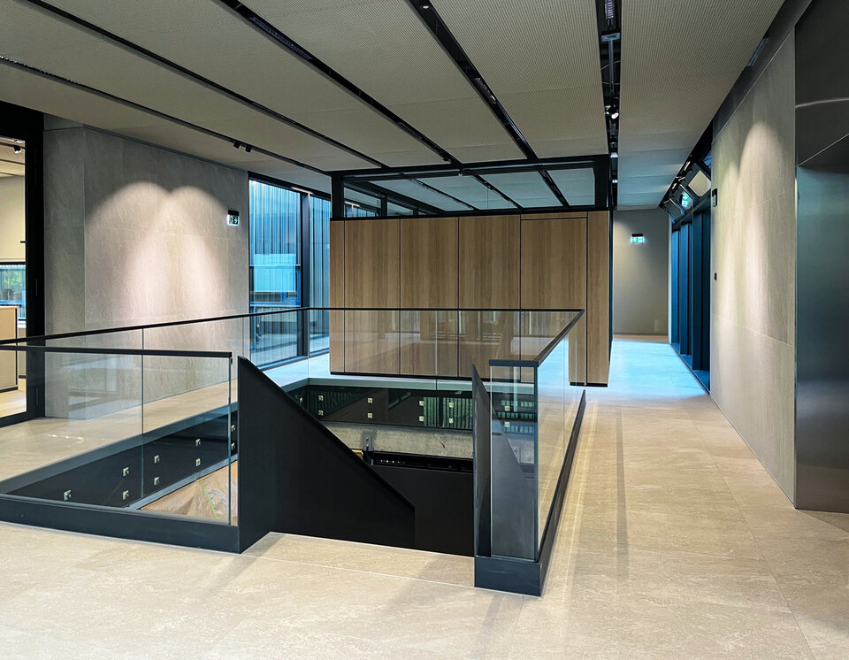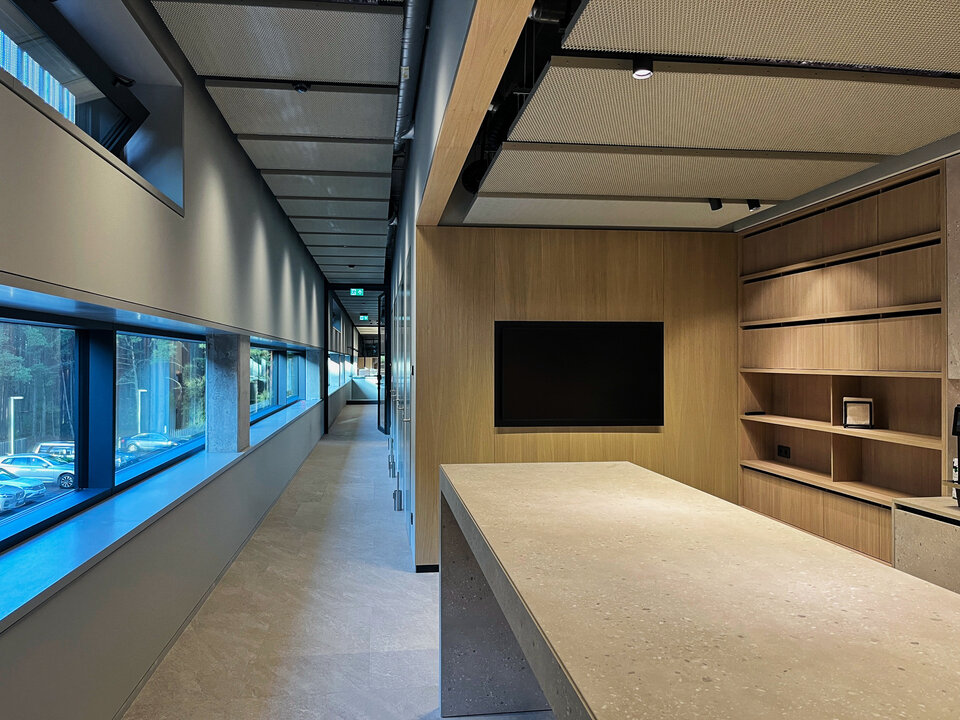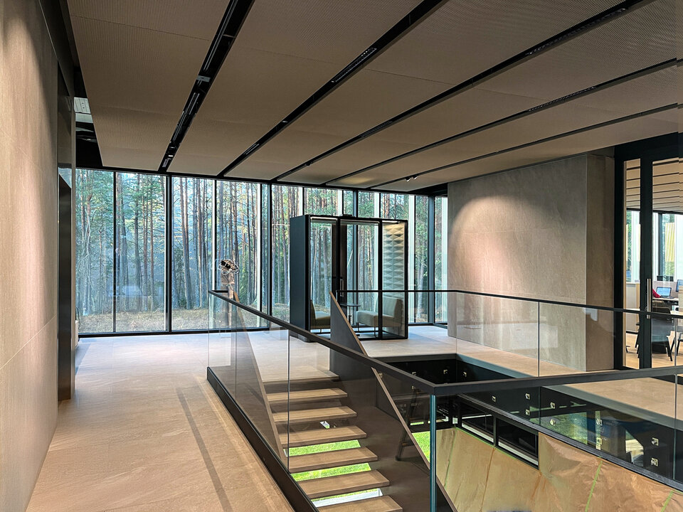 As a key component of the interior fit-out, the Plafotherm® St 213 chilled ceiling system was installed as canopy ceilings for the first time in a Lithuanian construction project. Commissioned by Lemora, one of Lithuania’s leading traders of construction materials and finishing products, the suspended ceiling rafts were fitted with integrated heating and cooling technology to provide precise and efficient climate control. Lindner had previously worked successfully with Lemora in the field of raised floor systems, with Lemora managing the supply business. Through this close collaboration, Lindner has now demonstrated its expertise not only in its renowned raised floor systems but also in ceiling systems for the first time.
