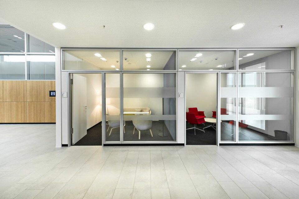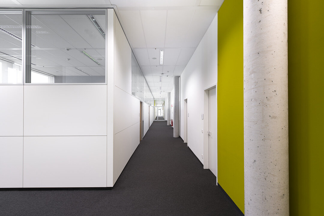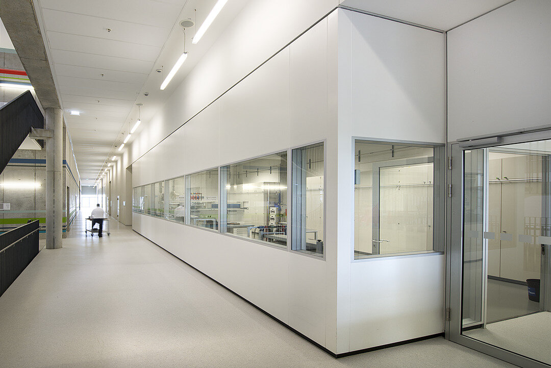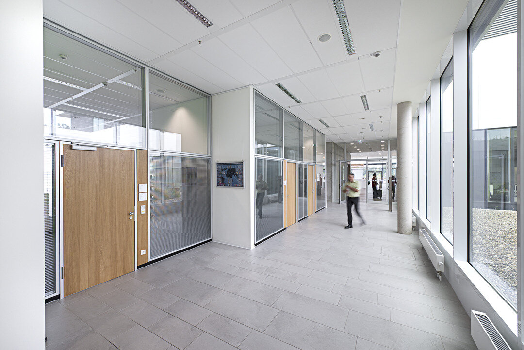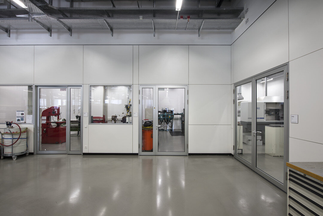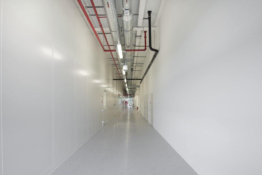 As a part of the centre´s construction, Lindner was contracted with an extensive interior fit-out package, which included performances in the administration building and all research buildings. The wide variety of demands that came with the project could be met by a cooperation of multiple specialist departments within Lindner Group. The performances, which were delivered under the leadership of Lindner Reinraumtechnik GmbH, included: dry construction works, ceiling systems, partition systems, floor systems and doors. Numerous custom-made solutions, such as 7-metres high laboratory walls, have been implemented to meet the sophisticated specifications.