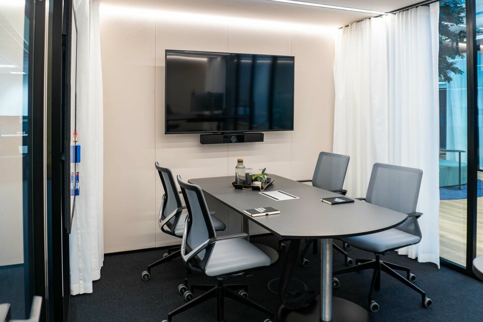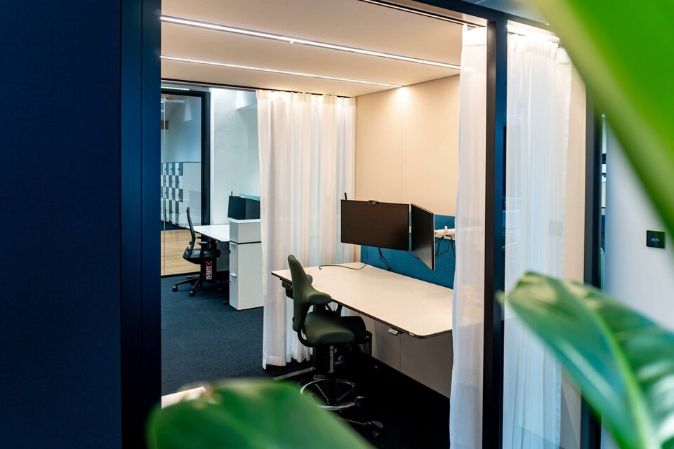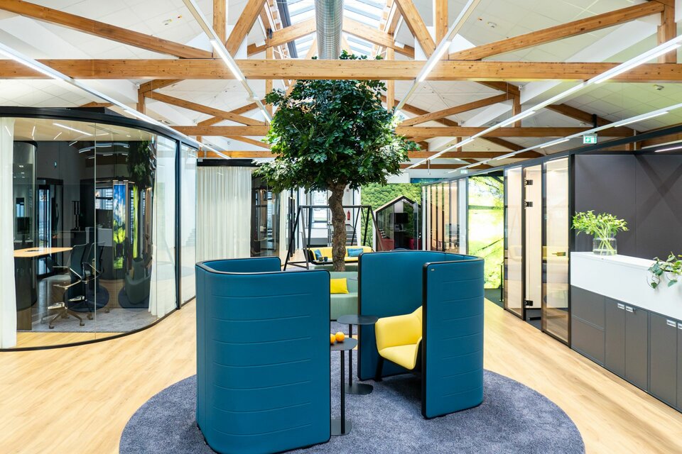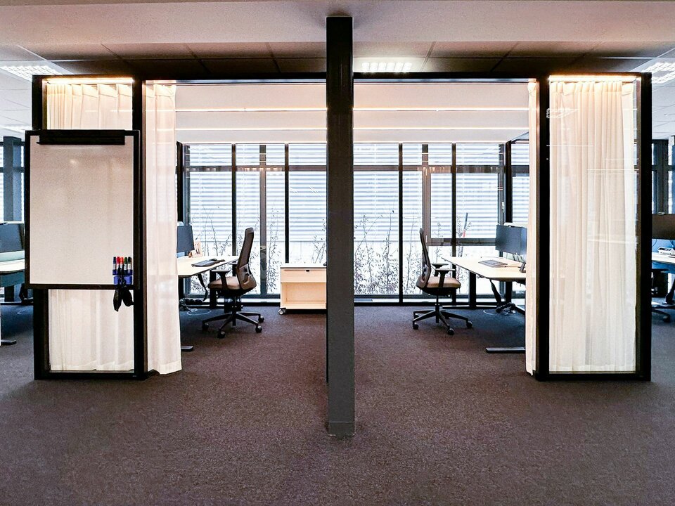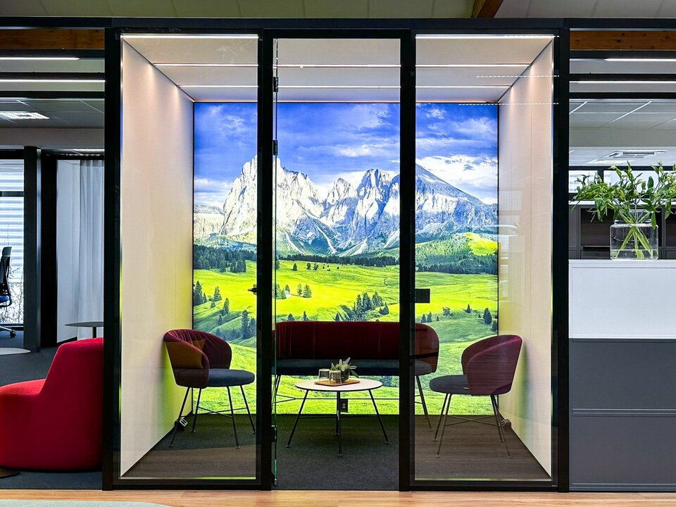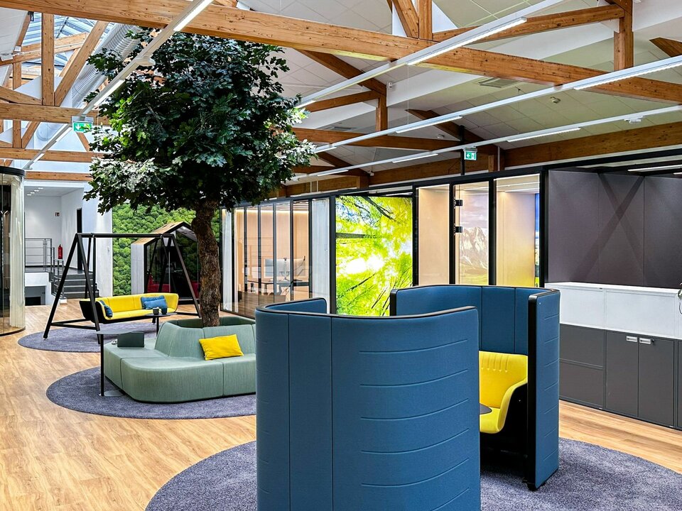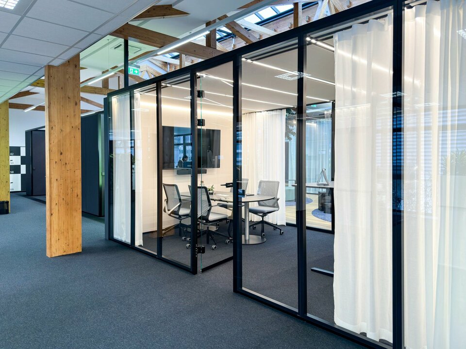 As part of this pilot project to develop new office environments, the Lindner Group made a significant contribution with a range of high-quality space solutions. Notably, the flexible Lindner Cube room-in-room system stands out: the system's curved glass panels, offer an aesthetic and functional enhancement to the office landscape, contributing to the creation of open yet soundproofed areas. Additionally, the flexible CAS Rooms were integrated, meeting the demands of modern office workspaces and offering a high degree of adaptability. Furthermore, high-quality Lindner Life Pure 620 glass partitions create transparent and acoustically protected zones that promote communication and collaboration. These bespoke solutions play a crucial role in the visual and functional optimisation of the new work environments, providing Brückner Maschinenbau employees with an effective and appealing working atmosphere.