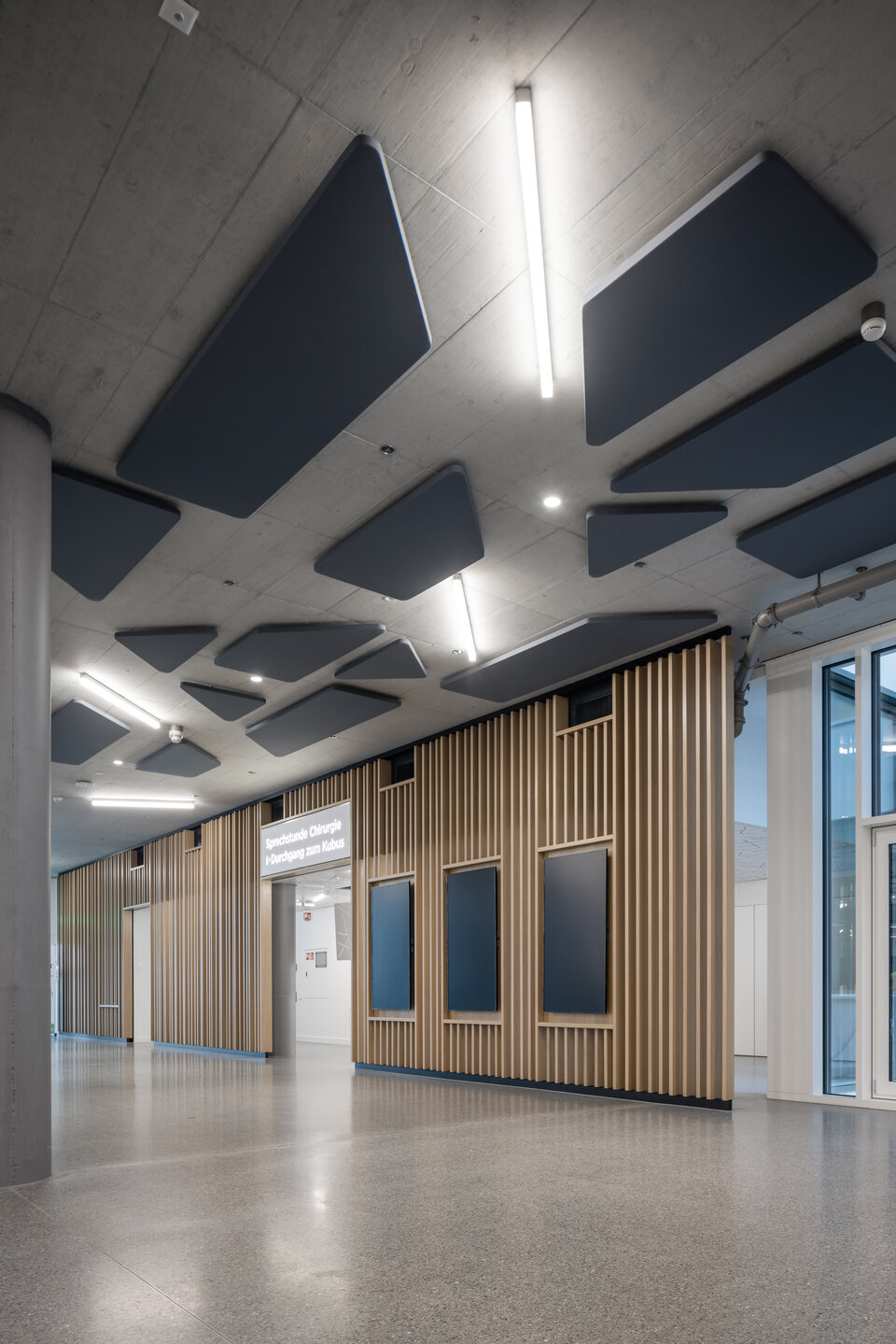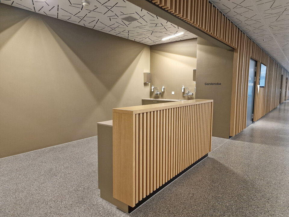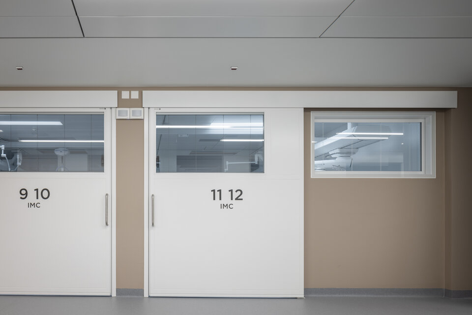 Natural daylight and a calm, welcoming atmosphere are essential in a modern hospital. That’s why glass partition walls like the Lindner Life Freeze 137 and the soundproof Lindner Life Stereo 125 were installed, enhancing both transparency and acoustic comfort. Natural materials also play a key role - wooden elements with a slatted structure on guiding walls create a warm and pleasant ambiance in lecture halls and corridors. Doors in various designs, from wood and glass doors to automatic sliding doors, seamlessly combine functionality with aesthetics, making everyday life easier for both patients and the staff.