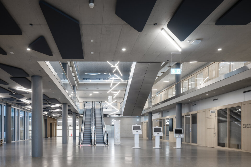 With the goal of putting people at the centre and creating a future-oriented healthcare infrastructure, a new eight-storey cantonal hospital was built in Baden following the principles of “Healing Architecture.” This concept seamlessly integrates infrastructural and operational processes into the building, ensuring an optimal spatial atmosphere for patients, visitors, and staff. A well-thought-out combination of lighting, colours, materials, acoustics, and intuitive routing significantly contributes to psychological well-being, making this “hospital of the future” a pioneering achievement in modern healthcare architecture.