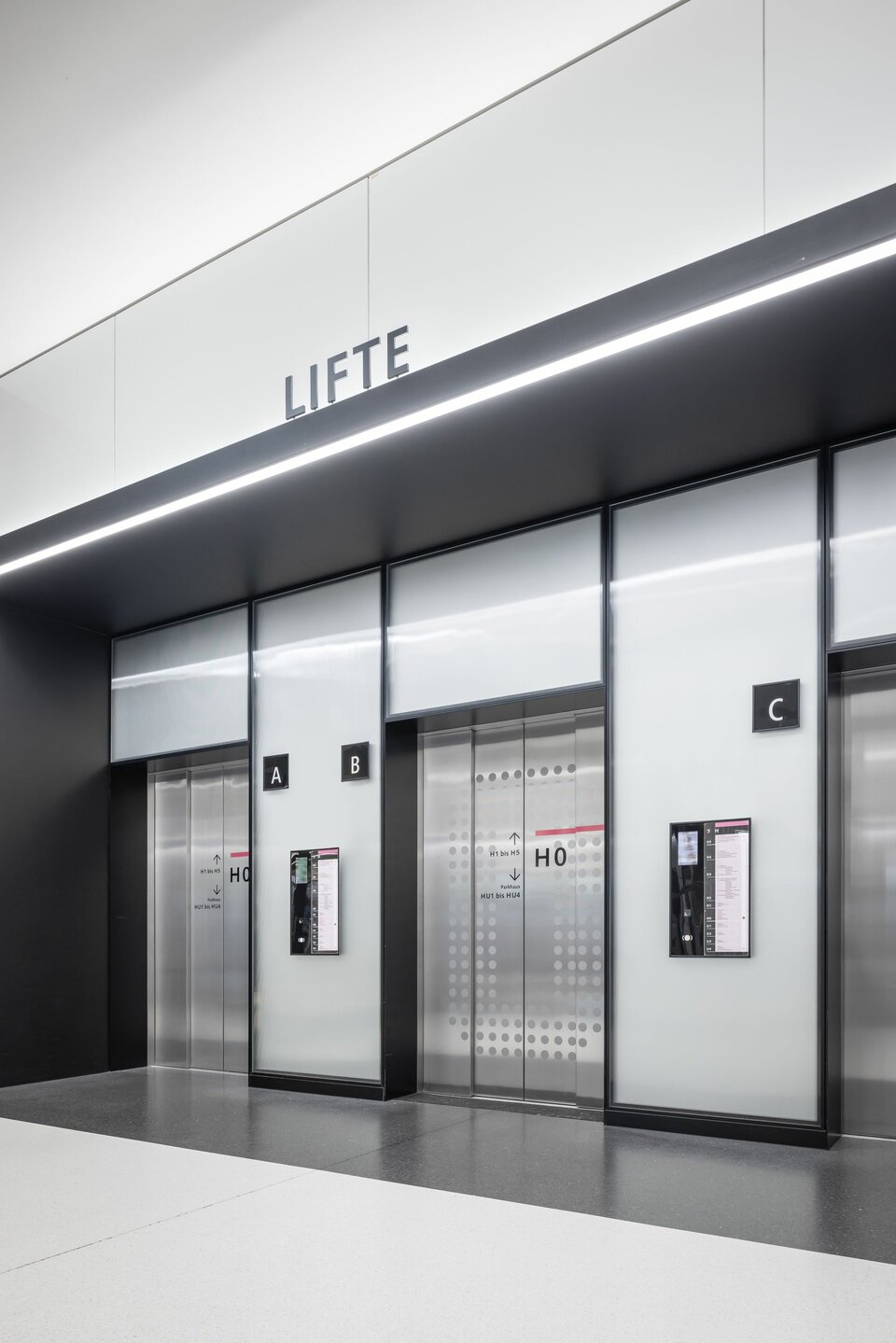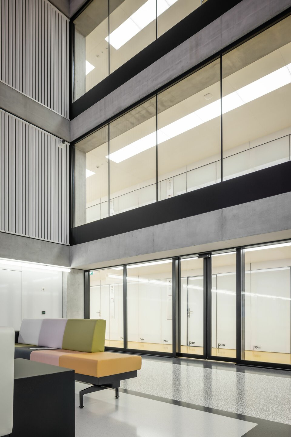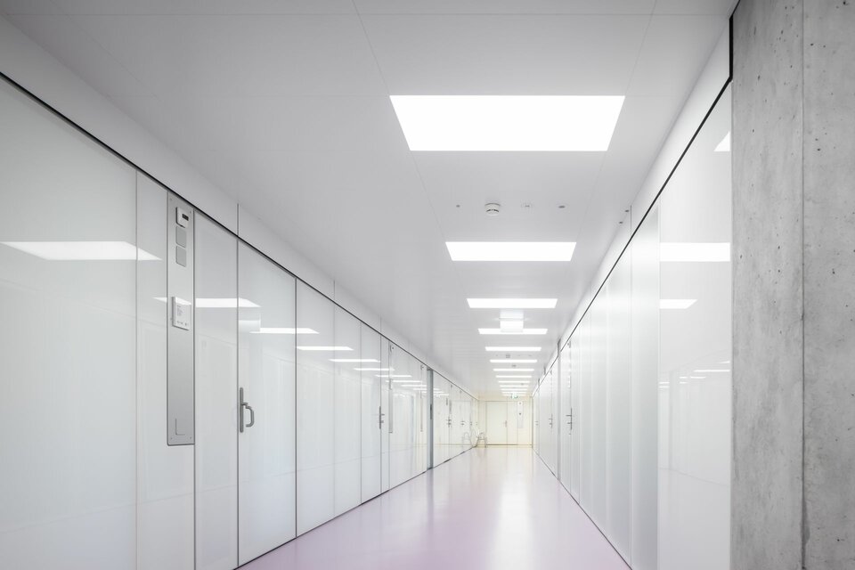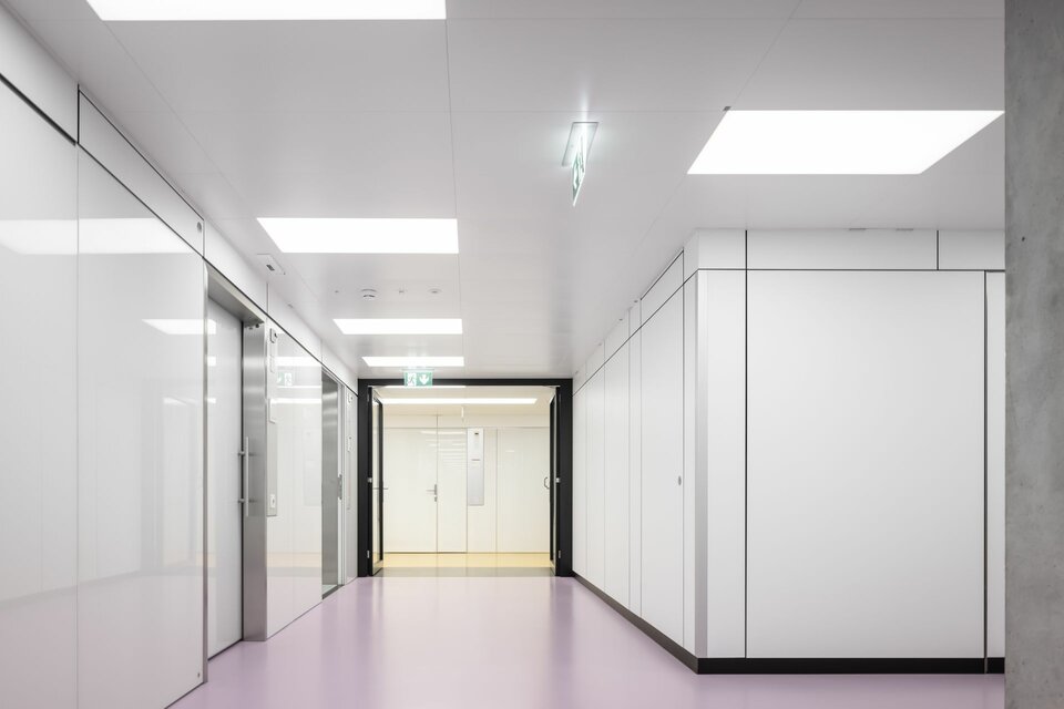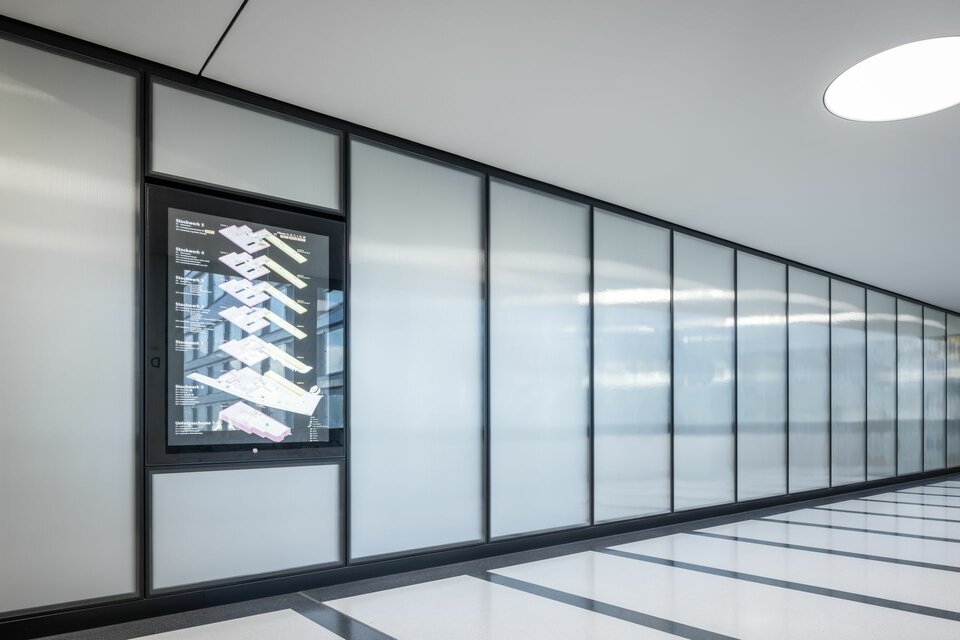 The Swiss branch of Lindner SE supplied and installed a variety of different partition wall systems including doors for the new H1 building. In addition to solid wall cladding made of wood and metal in the various access and common areas, such as the lift area and canteen, Lindner also supplied various fixed glazing (in EI 0 and EI 60) and other glass partition wall systems with matching doors. Some of the doors were also designed as electric sliding doors, e.g. to simplify access to the atriums in the visitor rooms. The construction measures in H1 have already been completed, the second construction phase is currently being planned and will be carried out with Lindner's participation until 2026.
