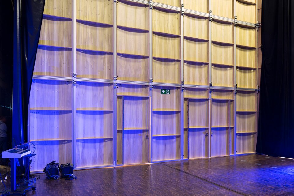Lindner Objektdesign was responsible for the construction of the mobile concert room, which consists of special mobile acoustic walls and suspended canopy ceilings. It can be set up in three different sizes thanks to its modular structure. In its largest variety, the construction is has the following dimensions: 25m x 14m x 11m (WxHxD). The room can be set up in less than a day. All in all, the concert room combines the requirements of a lightweight construction, which allow easy handling, with the high demands on room acoustics.