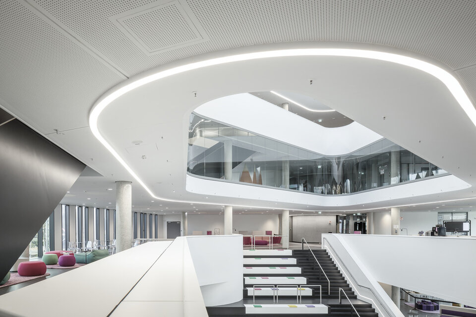 Among other things, 5,400 m² of the Plafotherm® GK HEKDA® heating/cooling ceiling system ensure optimised acoustics and a good indoor climate in the open spaces. In cooperation with the architects HENN, a modern, light-open work campus was created within 20 months, in which employees can meet and cooperate more easily and efficiently.