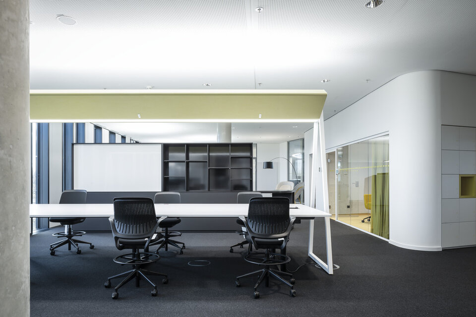 Covestro AG moved into its new headquarters in the "chemical capital" of Leverkusen at the end of 2020 (with a reduced team due to the pandemic situation). The administration building of the world's leading supplier of polymer materials offers plenty of space and various work options for up to 750 employees with six floors and modern office areas. It was particularly important to the clients and architects to implement a coordinated, consistent design concept with individual solutions.