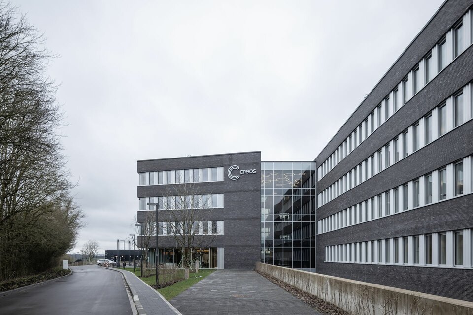 New headquarters for Creos Luxembourg S.A., owner and operator of electricity and natural gas networks in Luxembourg: The two-part building complex in Merl houses the administration, various workshops, the warehouse and the garage of the operations centre on a total area of 19,400 m2.