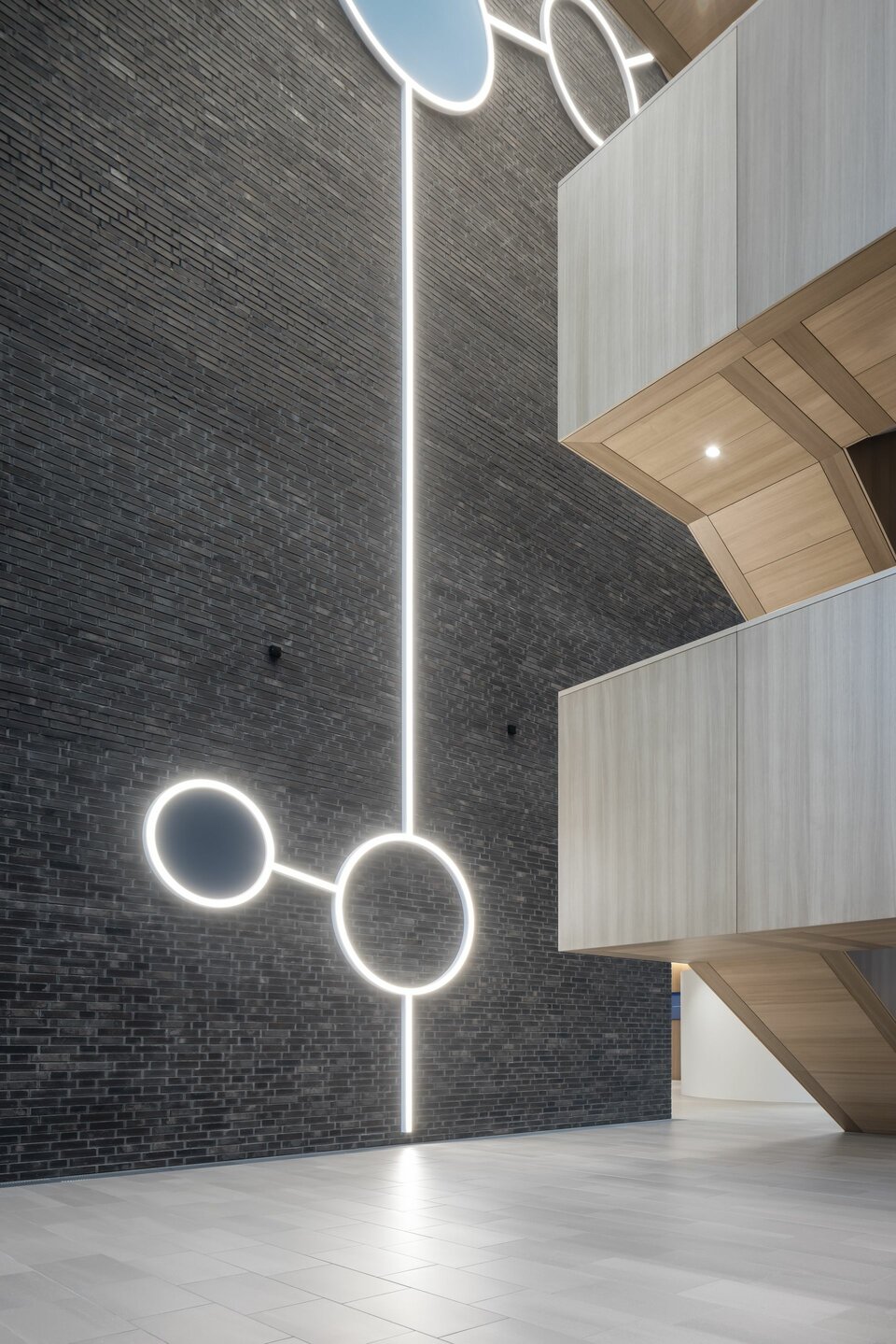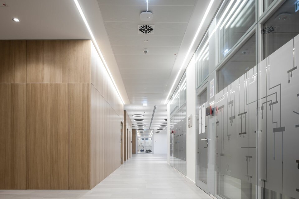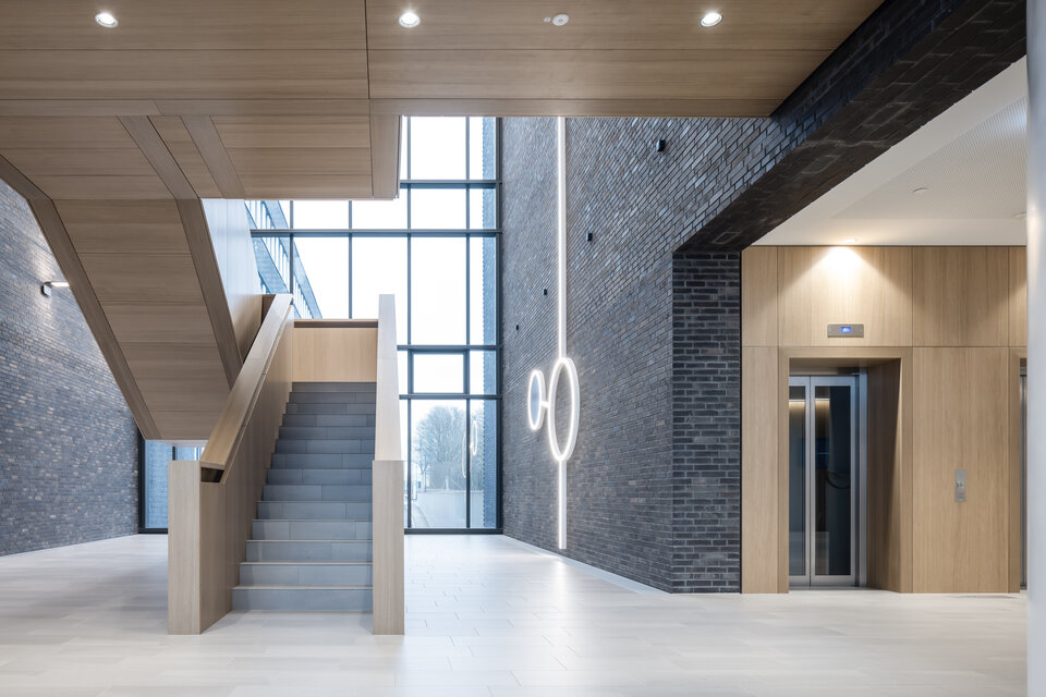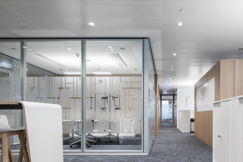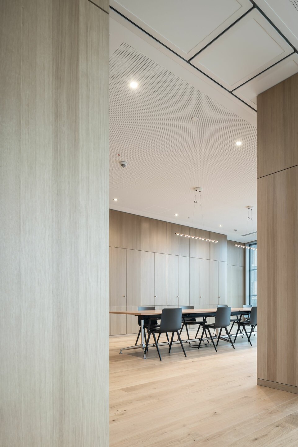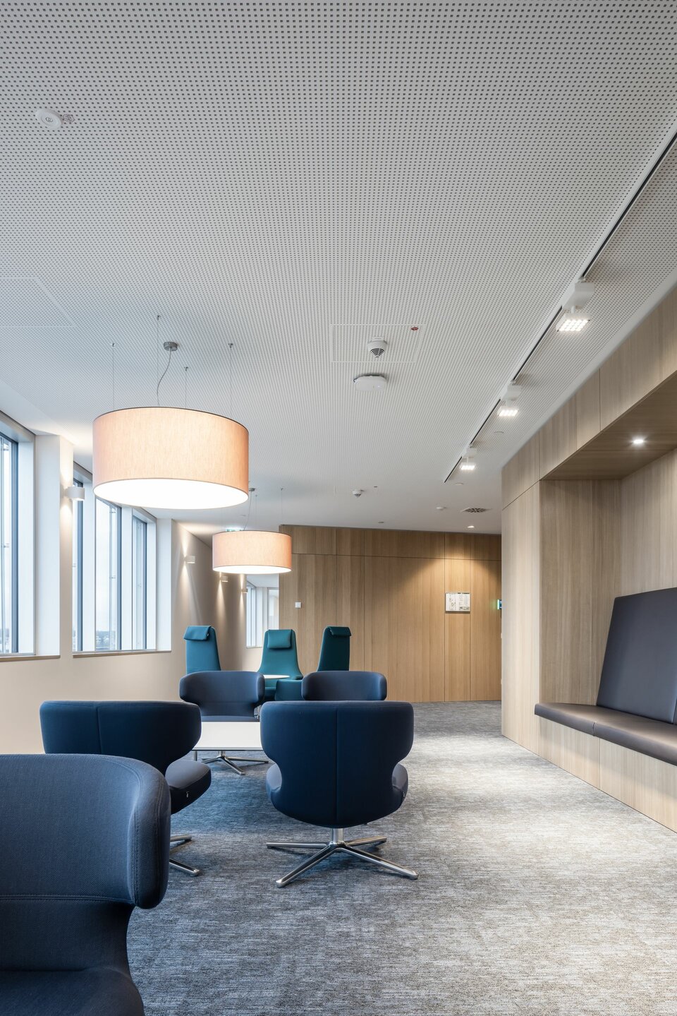 The company headquarters combines sustainability and energy efficiency to a particularly high degree: The building is DGNB Platinum certified and meets the BBB (low energy) and CCC (energy efficiency) standards. Lindner made a significant contribution to this with its sustainable interior fit-out: Many of the products installed, such as the NORTEC raised floor and the FLOOR and more® hollow floor, are Cradle to Cradle Certified® Silver. The Lindner Life Stereo glass partition system installed in the offices is also Cradle to Cradle Certified® Silver, the expanded metal ceiling is Cradle to Cradle Certified® Gold. Further solid wood and metal partitions provide separation and privacy throughout the building. However, the Corona pandemic presented Lindner with some challenges during the construction of the new headquarters: It was necessary to react quickly to delays in the supply chain and to adapt the on-site assembly process to the new health and safety regulations. Despite these unexpected challenges, the well-functioning project team was able to complete the construction site to the full satisfaction of the architects and the client.