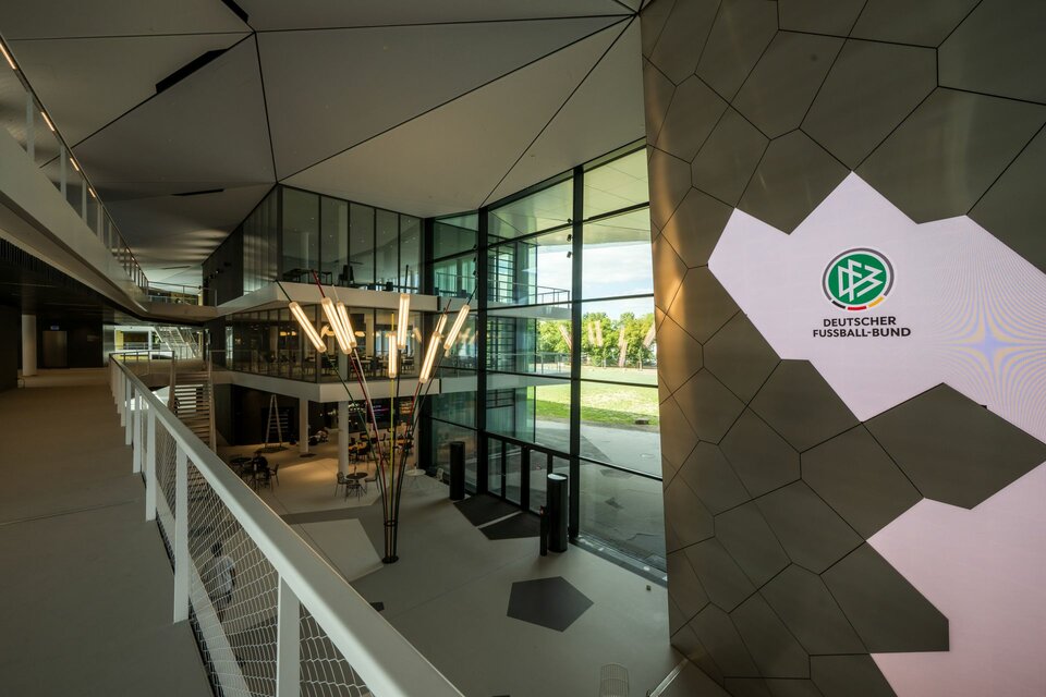 With the new DFB Campus in Frankfurt am Main, the German Football Association (DFB) has created a central home for the German football family. The new building aims to exploit synergies by bringing together administration and press, the DFB Academy, various sports facilities and catering in one place.