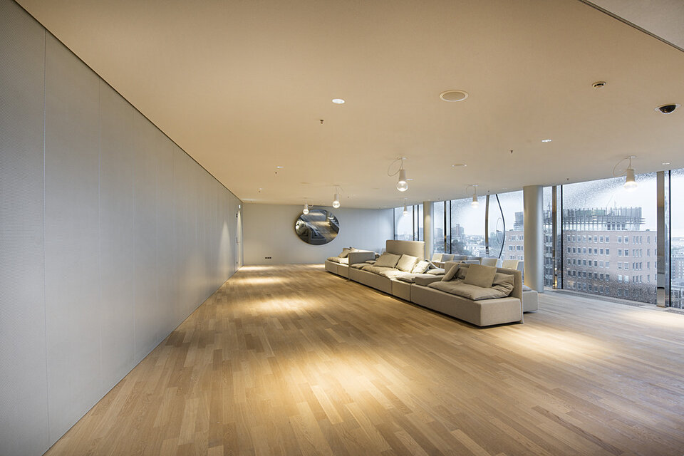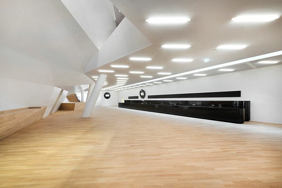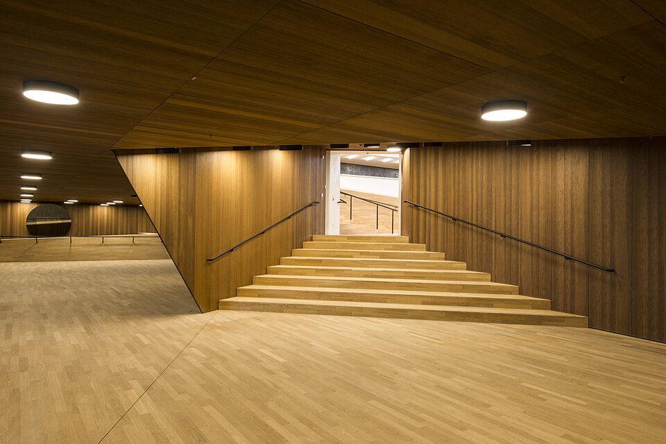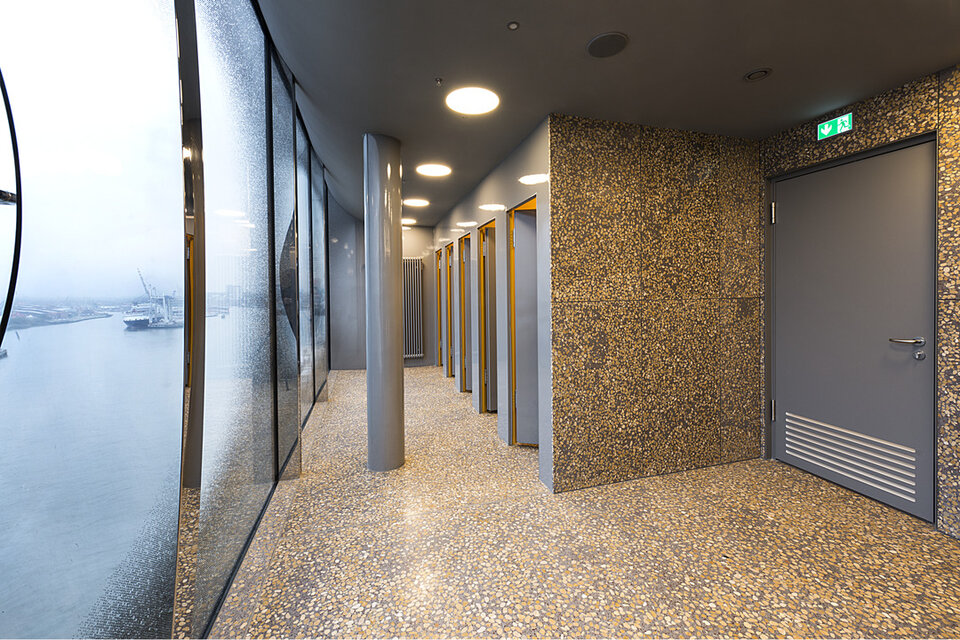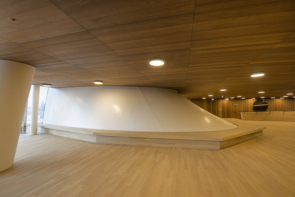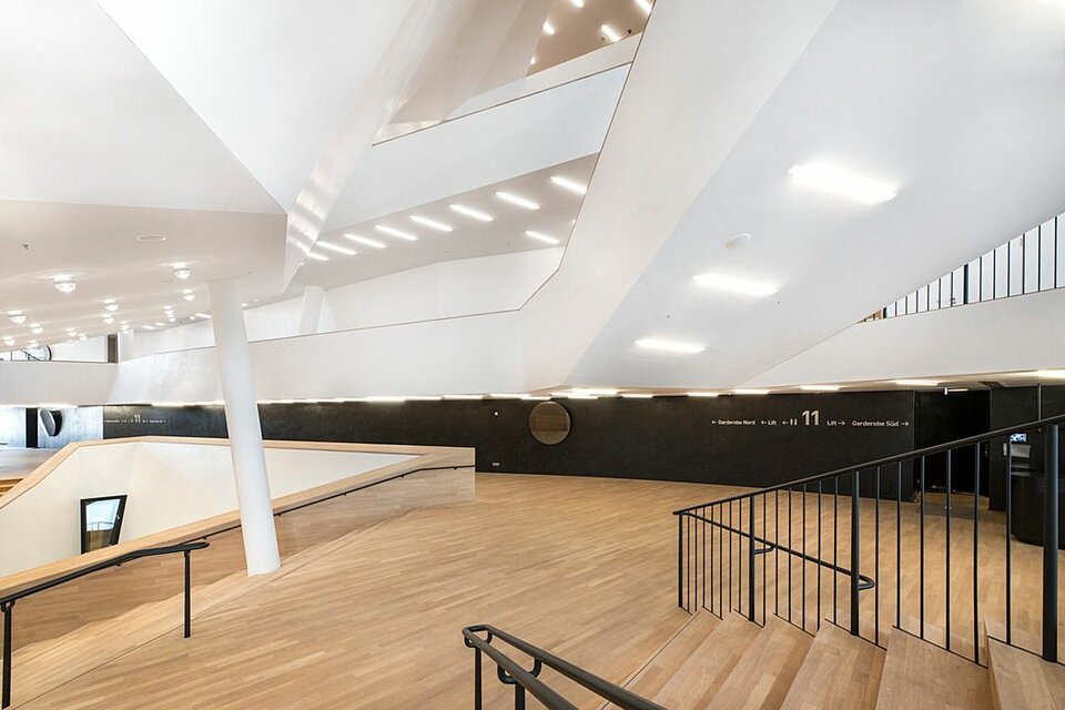 Lindner AG participated in the construction of the Elbphilharmonie by undertaking a demanding fit-out package for the foyers of the concert halls, including the stairwell construction from the plaza leading to the foyer. Furthermore, the scope of works included the fit-out of several lounges as well as office and backstage areas and sanitary facilities. The omnipresent demand for utmost quality shows in a large number of custom constructions that form a basis for the unique room construction. One example for this aspect are the foyer stairwells, executed in a rounded and arched form using a construction system that was developed and patented by Lindner. Another major contributor to the pleasant environment are Baswa Acoustic Ceilings that have been installed on large areas and partially fitted with cooling technology. Traditional crafting techniques also saw use in the Elbphilharmonie, one example being Stucco Encausto surfaces. Due to high levels of visitor traffic, fire protection plays a major role in the concept of the building. Without requiring cuts in appearance or acoustics, Lindner gypsum fibre boards allowed the implementation of veneered compound systems that met fire protection standards of up to class A2.