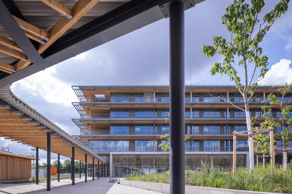By 2026, a new standalone extension of the Kirchheim Gymnasium will be completed, seamlessly integrating into the adjacent town park. Featuring a distinctive stacked timber design, the building combines clear architectural lines with open, organic interior spaces. Key communal areas such as the auditorium, foyer, and cafeteria foster interaction and a strong sense of community. Flexible classroom layouts and a dedicated STEM wing (MINT in German: Mathematics, IT, Natural Sciences, Technology) promote modern, interdisciplinary learning.