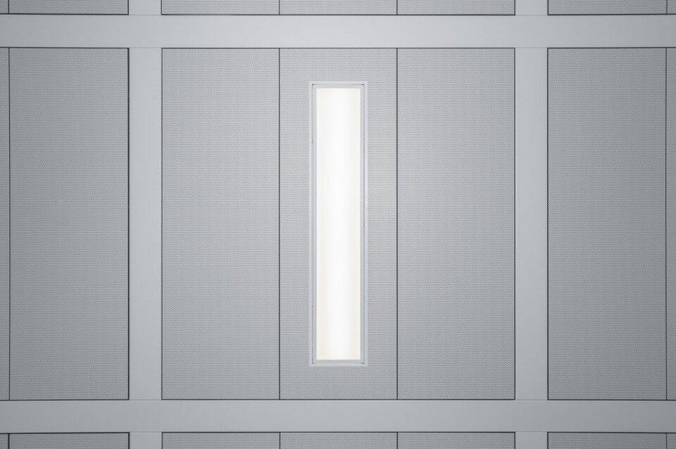 Lindner contributed ceiling and floor systems to this compound. The cross-noggin post-cap ceilings of type LMD-B 110 were fitted with a perforation and rearside acoutic fleece for this purpose. The latter was produced directly by Sandler, being an expert for nonwovens and a long-time supplier. Additionally, the ceilings have been fitted with luminaires from Lindner Group´s range. In regard of floorings, NORTEC raised floors have been installed with carpet coating, thus meeting the building´s demands.