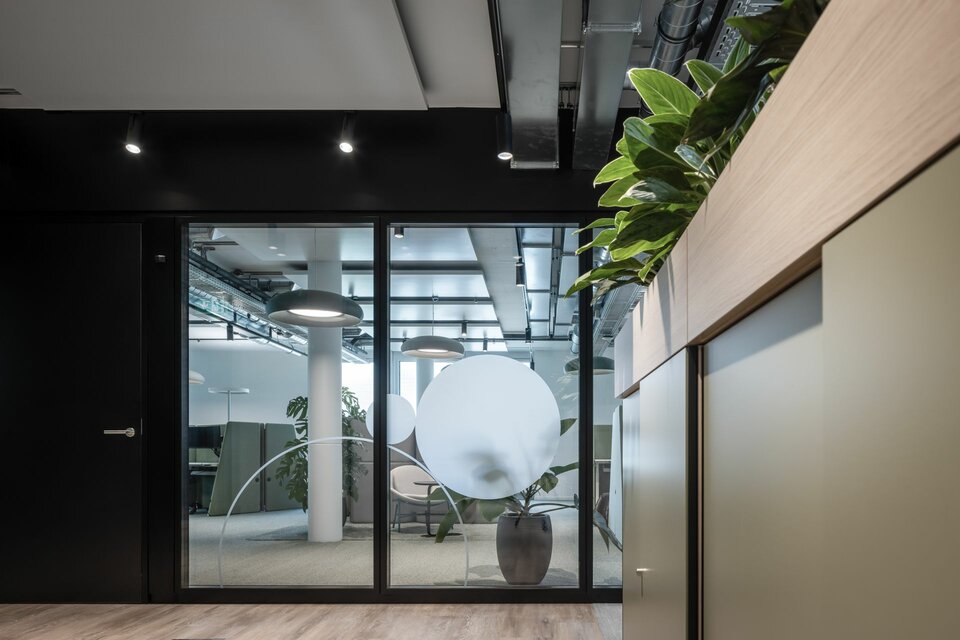 The Lindner Group was involved in the fit-out of the project and added some architectural highlights to the interior: The Lindner Life Stereo 125 partition system was designed with a black frame and all-glass corners. The latter brought some challenges in terms of transport and assembly – but the professional delivery was worthwhile and led to a modern, exceptional result. The Lindner Logic 100 Timber partition acts as a warm contrast to the elegant glass partitions. Matching double-leaf door systems from Lindner complemented the interior fit-out.