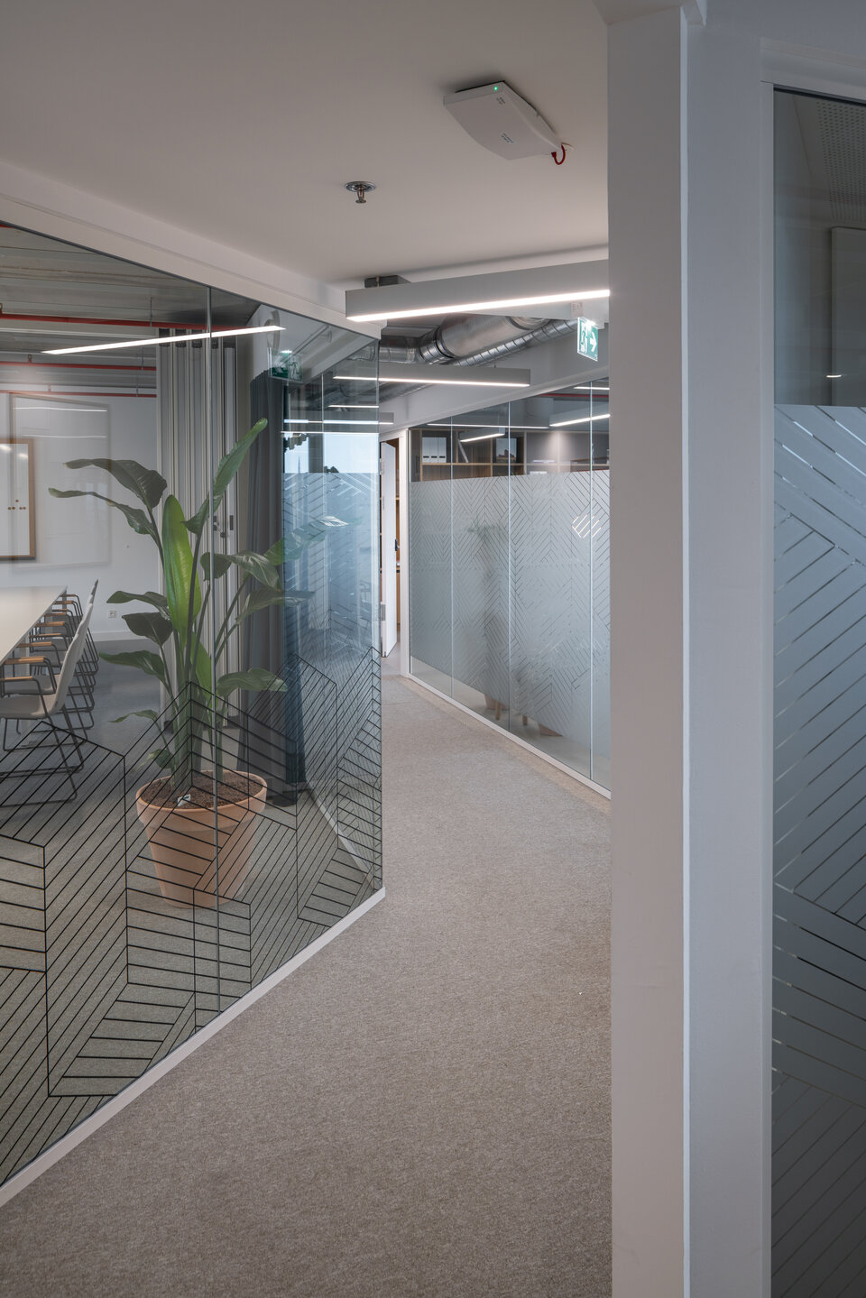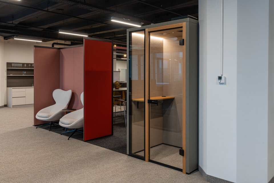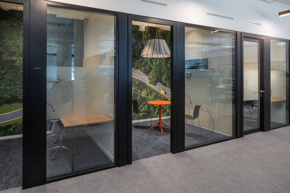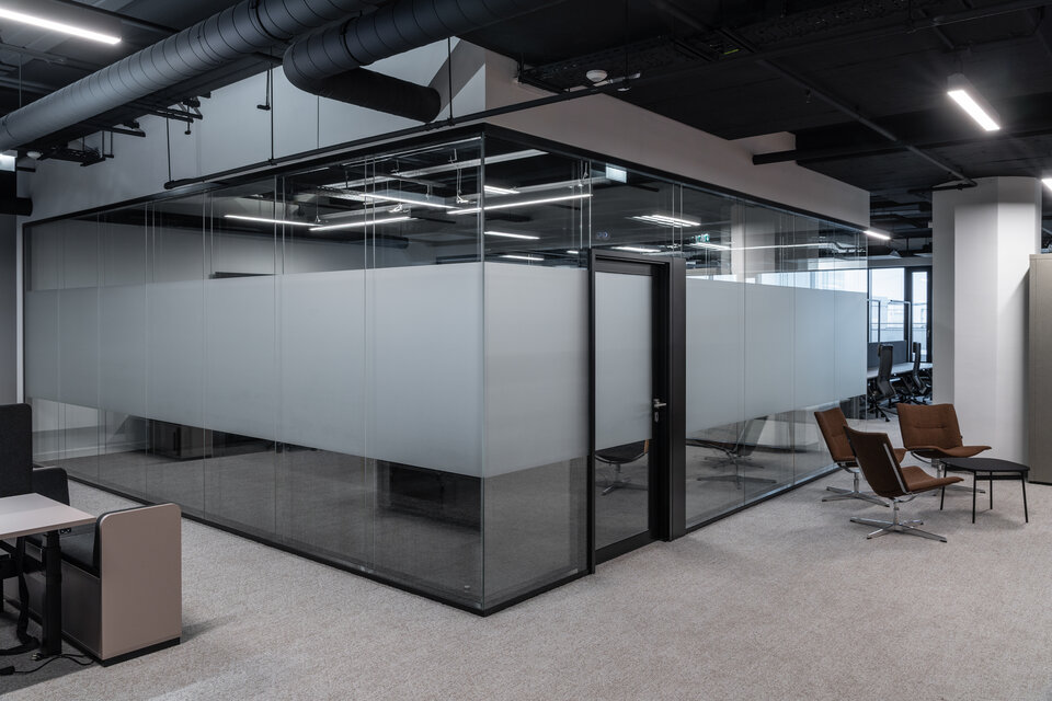 In the area of wall systems, Lindner Life Clear and Lindner Life Pure 620 glass partitions were used, supporting bright, open spatial concepts. These were complemented by mobile partition walls, which allow flexible floor plan layouts and can be adapted to users’ needs at any time.