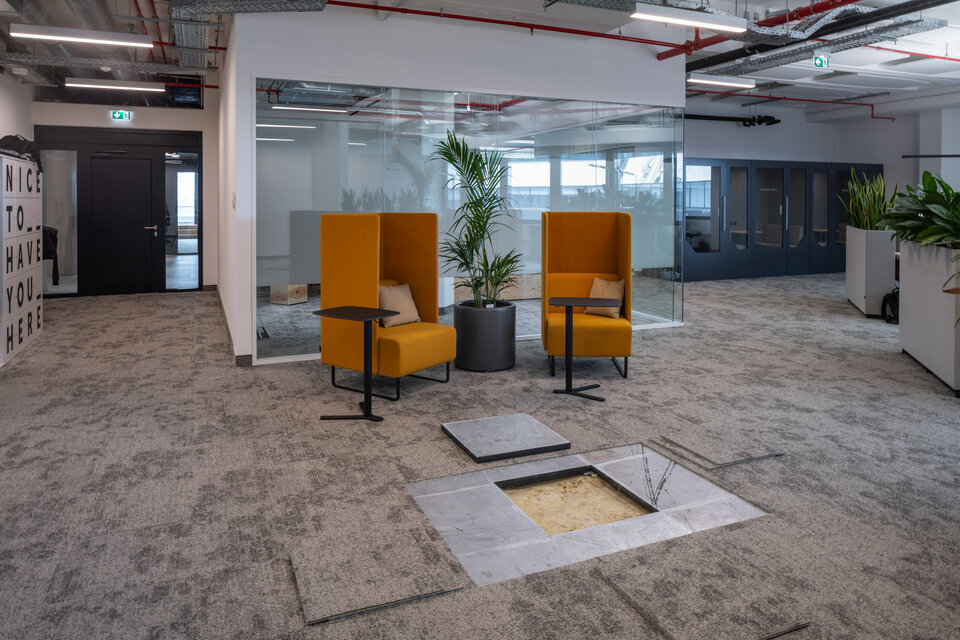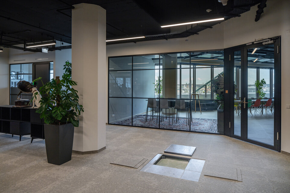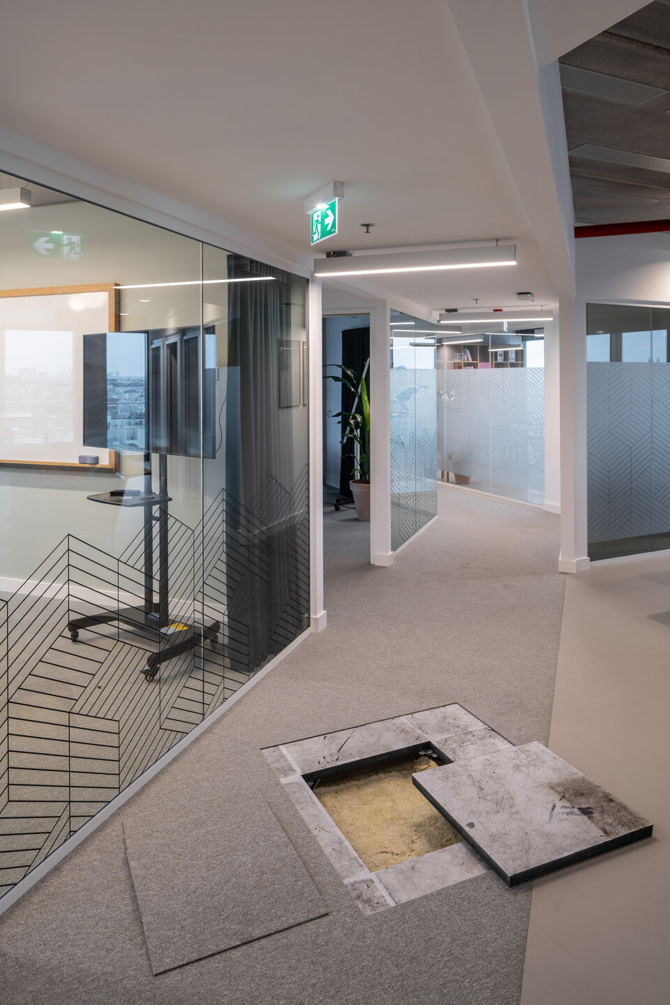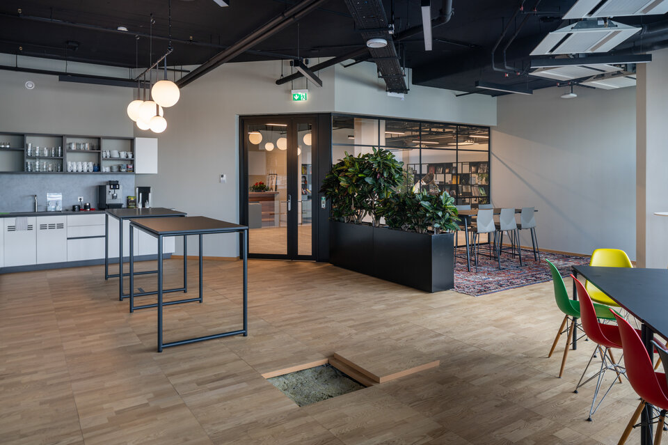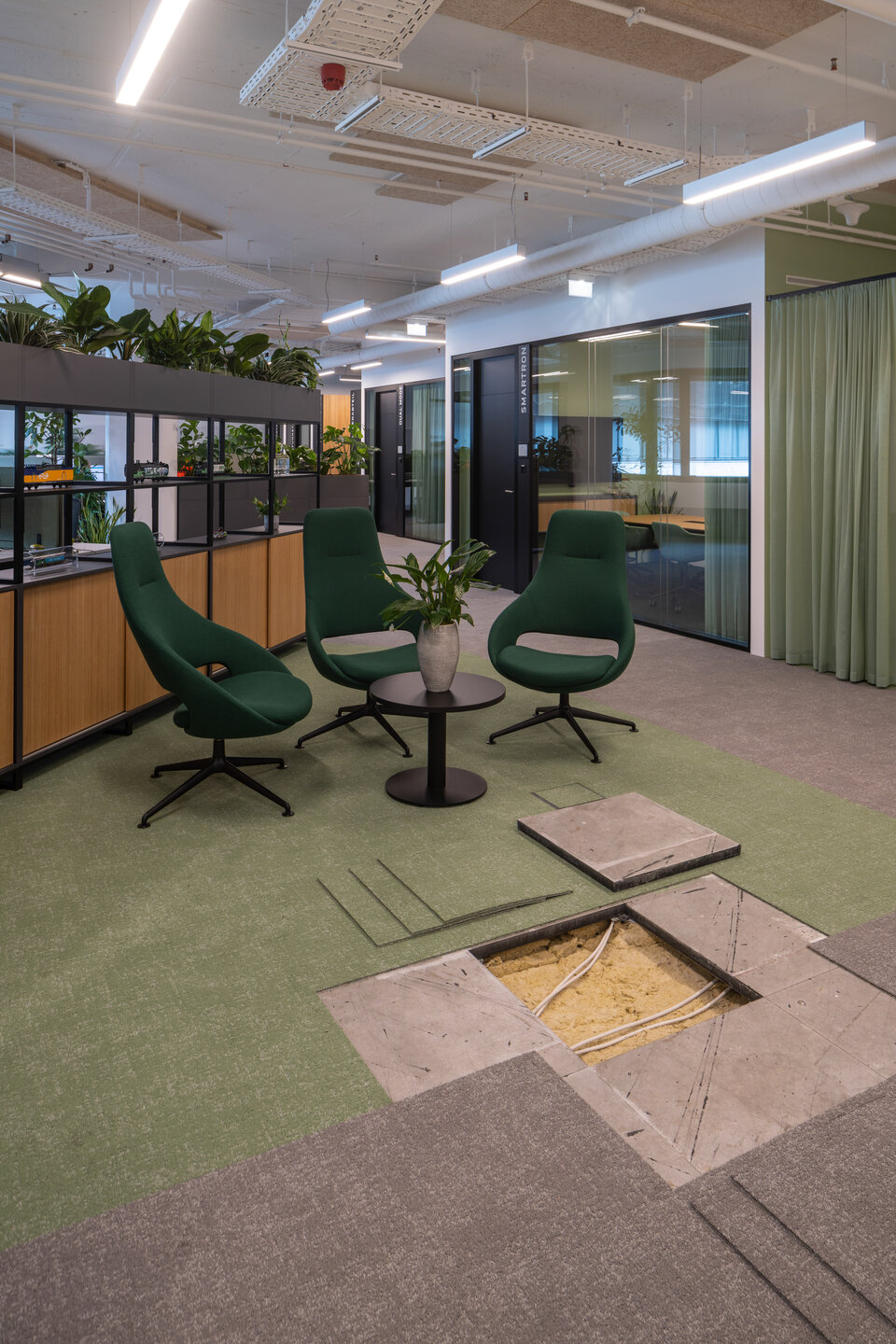 Flooring systems also play a central role. Across several tens of thousands of square metres, LIGNA raised floors and FLOOR and more® hollow floors with rubber coverings, carpet tiles or parquet were installed. The result: robust, acoustically effective and visually appealing surfaces for a wide range of uses.