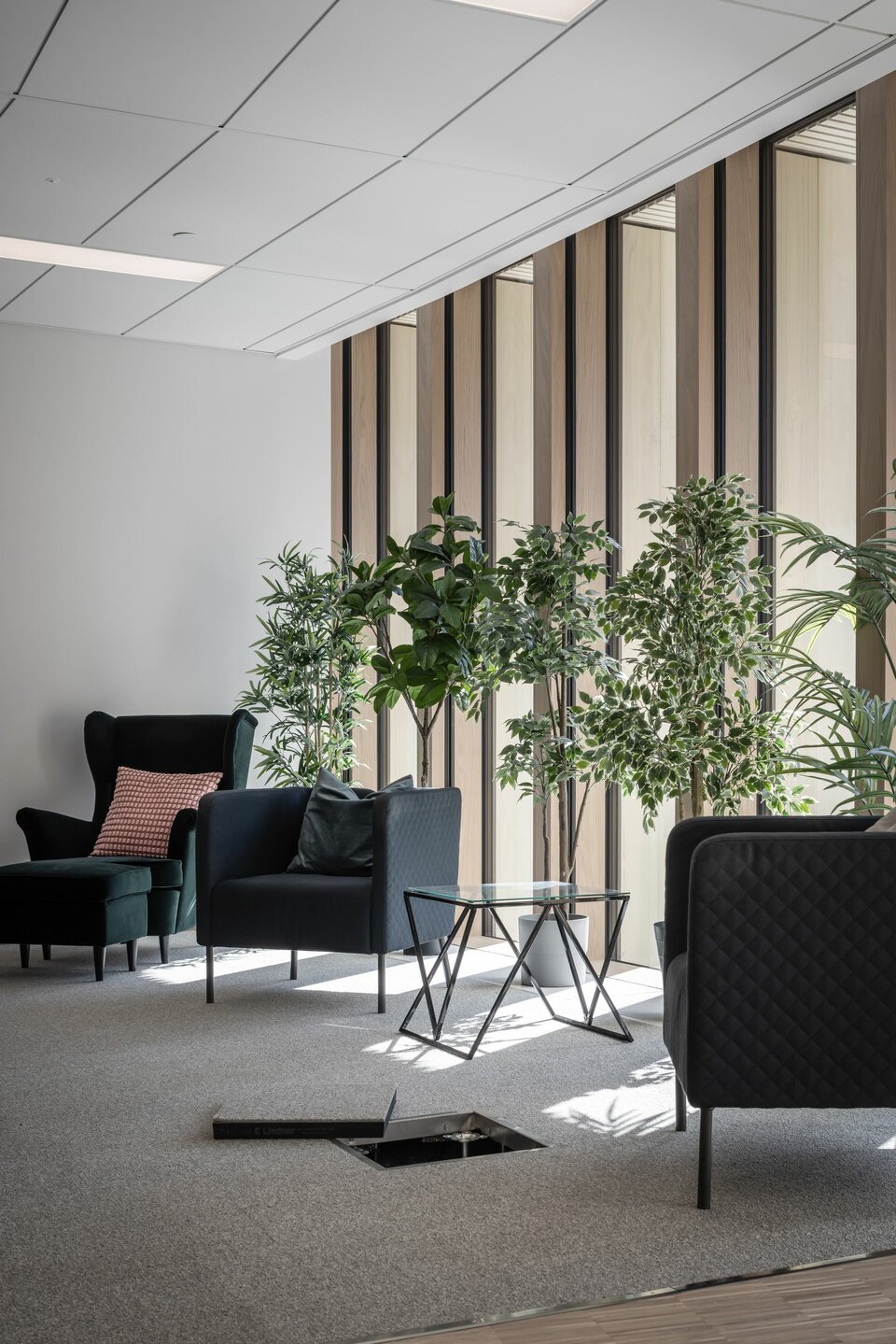 With two product solutions, the Lindner Group contributed to the successful realisation of this project: The NORTEC raised floor system stands out for its excellent sound insulation and high walking comfort, making it ideal for the diverse demands of Forskaren's scientific and public spaces. Additionally, the non-combustible calcium sulphate panels meet the highest ecological standards.