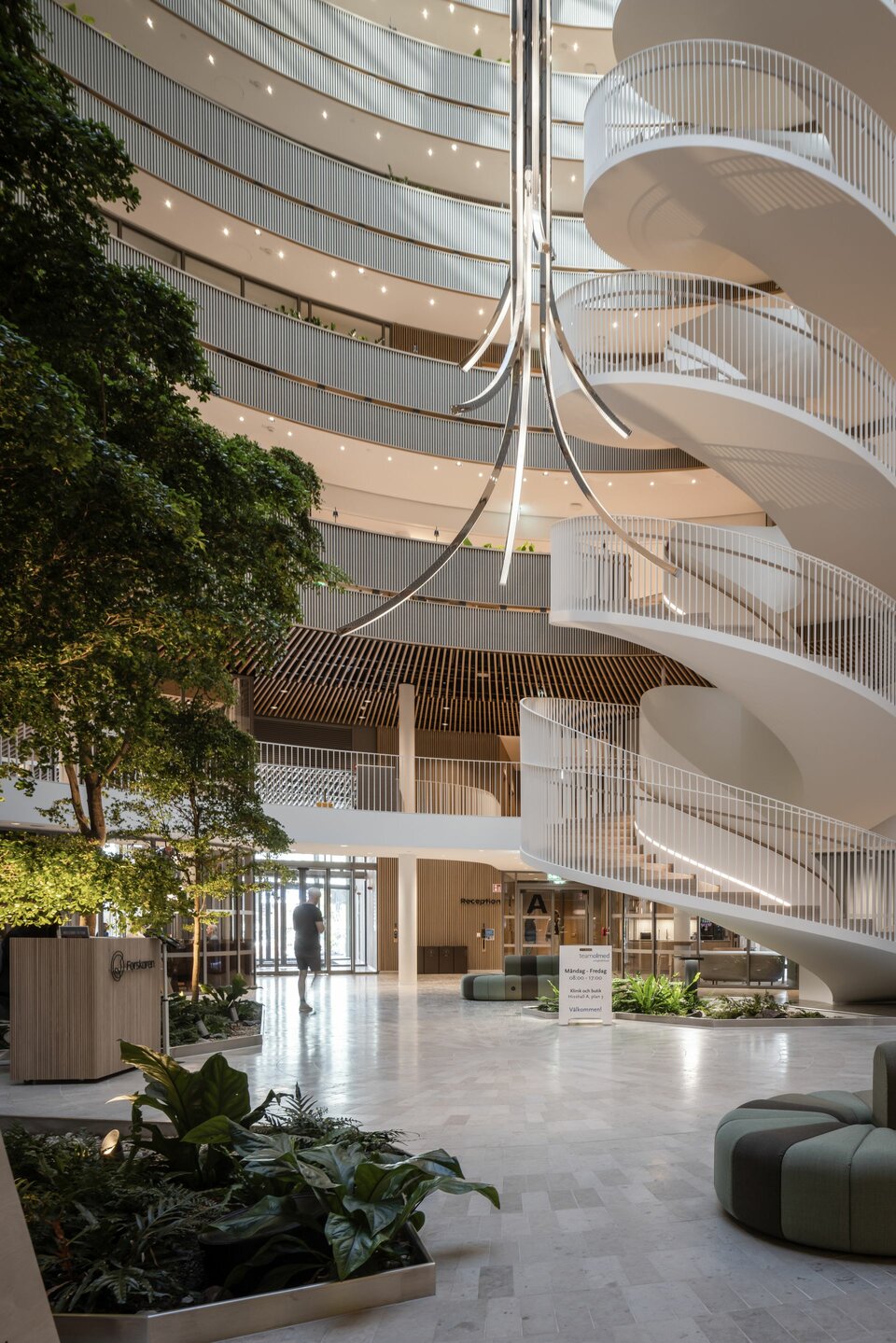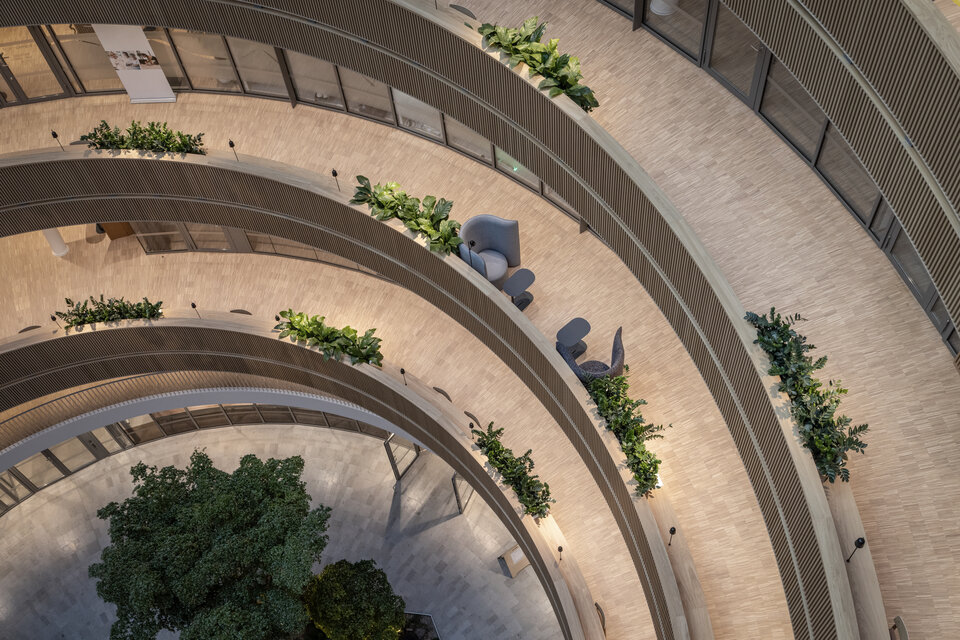 Forskaren, the centrepiece of the new district Hagastaden in Stockholm, impressively embodies the symbiosis of research, industry, academia, and the public sphere. The central location and distinctive circular design not only encourage social interaction but also establish it as a natural meeting point within this new urban area. Moreover, the district provides a top-tier research ecosystem in the areas of health, life sciences, and therapies, while creating modern housing, a new underground station, and green recreational spaces.