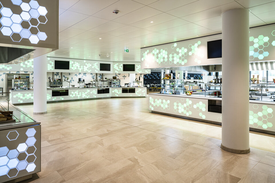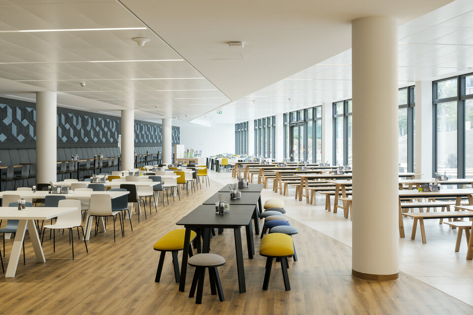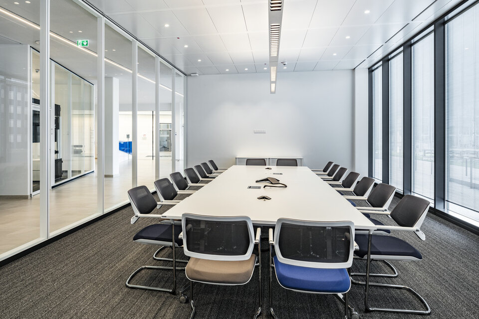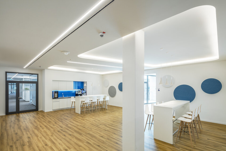 The steadily increasing number of employees caused Fresenius health care group to build a five-storey new constructoin at the group headquarters in Bad Homburg. The energy-efficient "EK3" offers 600 modern office workstations as well as conference rooms, an additional company restaurant and an underground carpark. Lindner was responsible for a considerable part of the interior fit-out works in the EK3. In addition to the central control of trades, Lindner was also able to contribute its own products, including post-cap ceilings with and without heating and cooling functions as well as floor systems and wooden doors, some with fire protection requirements.