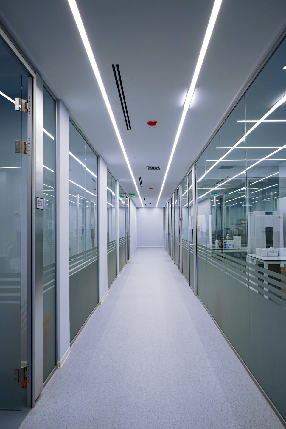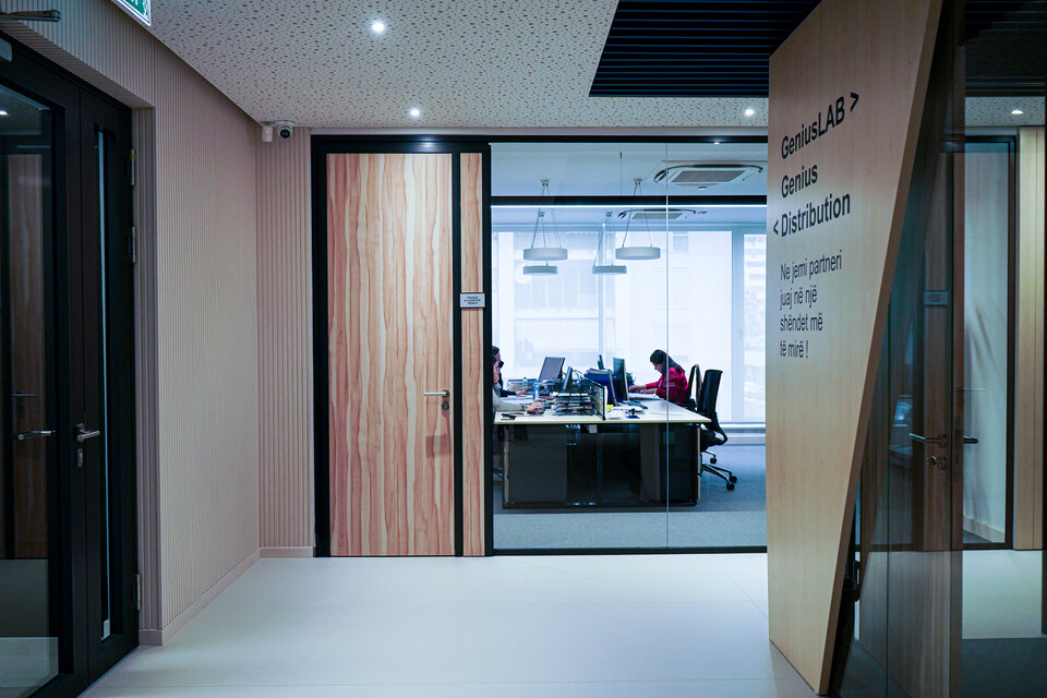 The GeniusLAB in Tirana, Albania, is a state-of-the-art diagnostic centre that provides doctors nationwide with essential information about their patients' health through advanced laboratory tests. With a team of over 190 specialised professionals, the company actively contributes to improving public health and the healthcare system in Albania. Spanning 2,930 m² over three floors, the new GeniusLAB on Kavaja Street offers specialised areas including laboratories, clean rooms, offices, storage spaces, and a spacious lobby. The new building places special emphasis on abundant natural light and a modern, minimalist design.