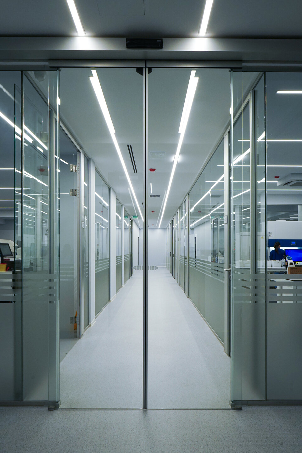 GTB-10 fully-glazed doors made from toughened safety glass were installed in double-leaf versions, offering a transparent appearance. Additionally, ATB doors with integrated access control were installed to protect sensitive patient data.