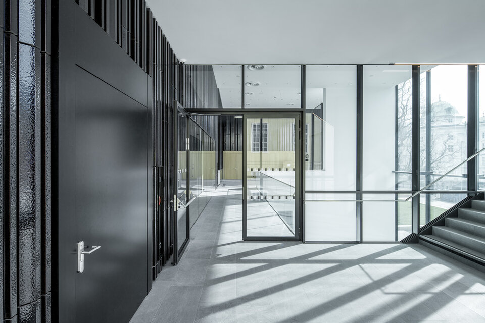 Lindner SE implemented a large number of individual special solutions in the building: Highly sound-insulated wooden door elements, including double door systems and wing doors, contribute to the undisturbed atmosphere in the rooms. Visually, they go seamlessly into the wall claddings also made by Lindner. Some of the doors are part of the Smoke Heat Exhaust System and make an important contribution to the safety of the Haus der Musik.