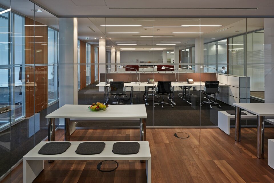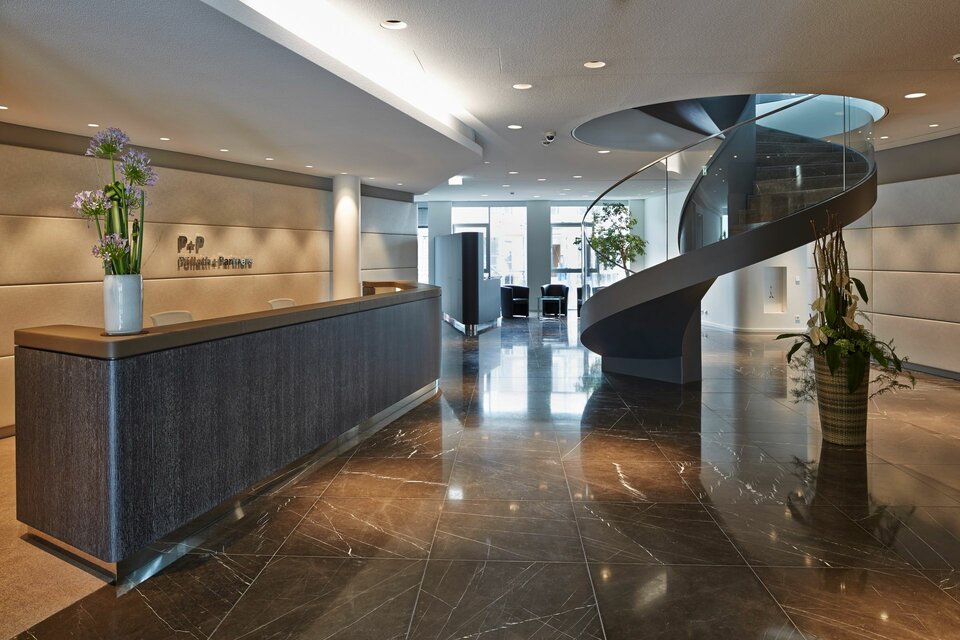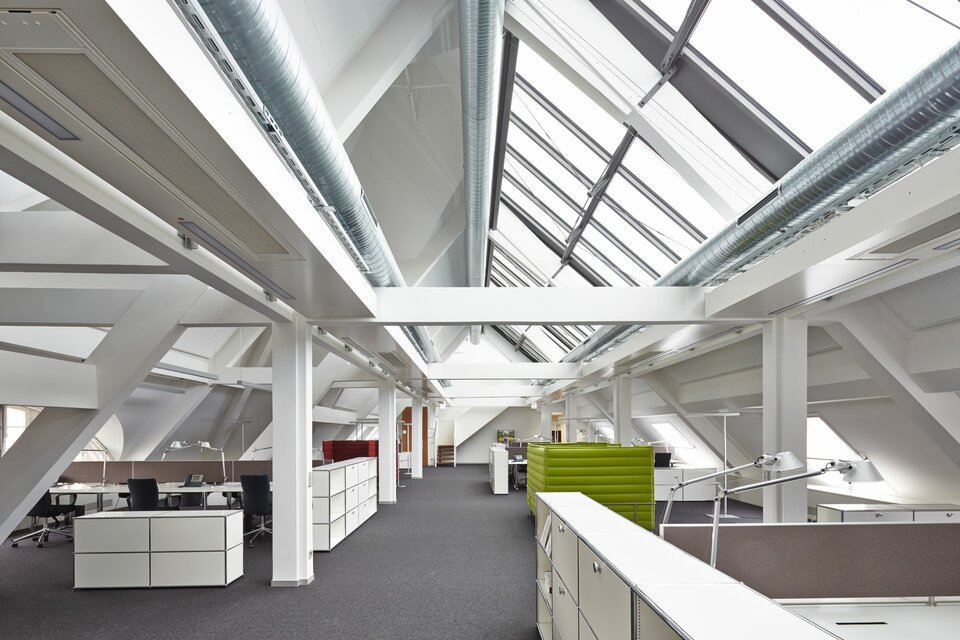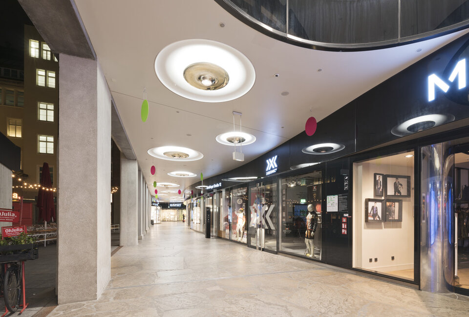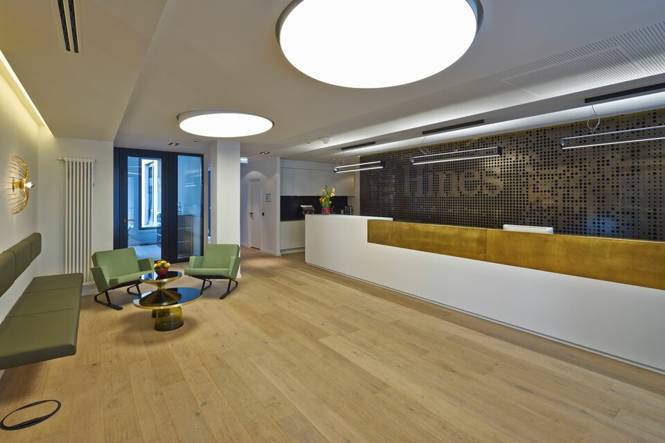 Lindner was awarded with a general contracting package for the fit-out of several areas of the complex. These included dry construction and natural stone works in the shopping arcade as well as the complete fit-out of all rental areas. Their tenants had various design approaches that needed to be met and put into practice. This was achieved through a variety of solutions, including numerous pieces from the Lindner product range, such as Floor Systems, Partitions, Heated and Chilled Metal Ceilings as well as custom joinery works. The central location of the complex in the Old Town of Munich rendered material deliveries challenging, while the lack of storage facilities required just-in-time delivery. The coordination of logistics and the construction works, which took place in seven individual parts of the complex at once, were therefore some of the greatest challenges of this large-scale project.