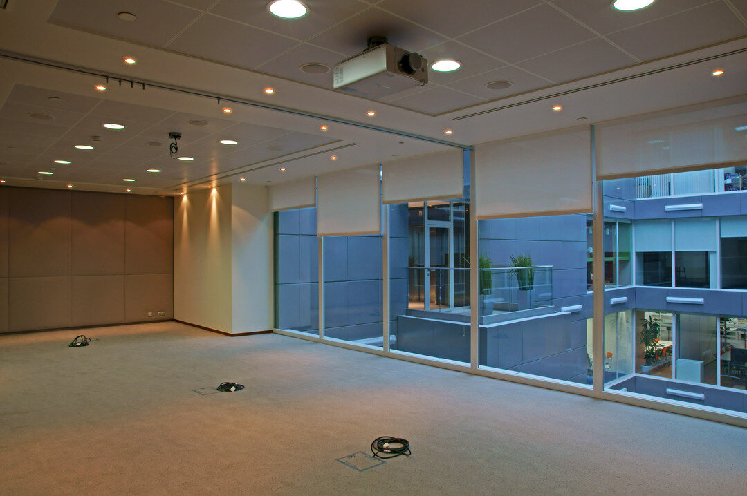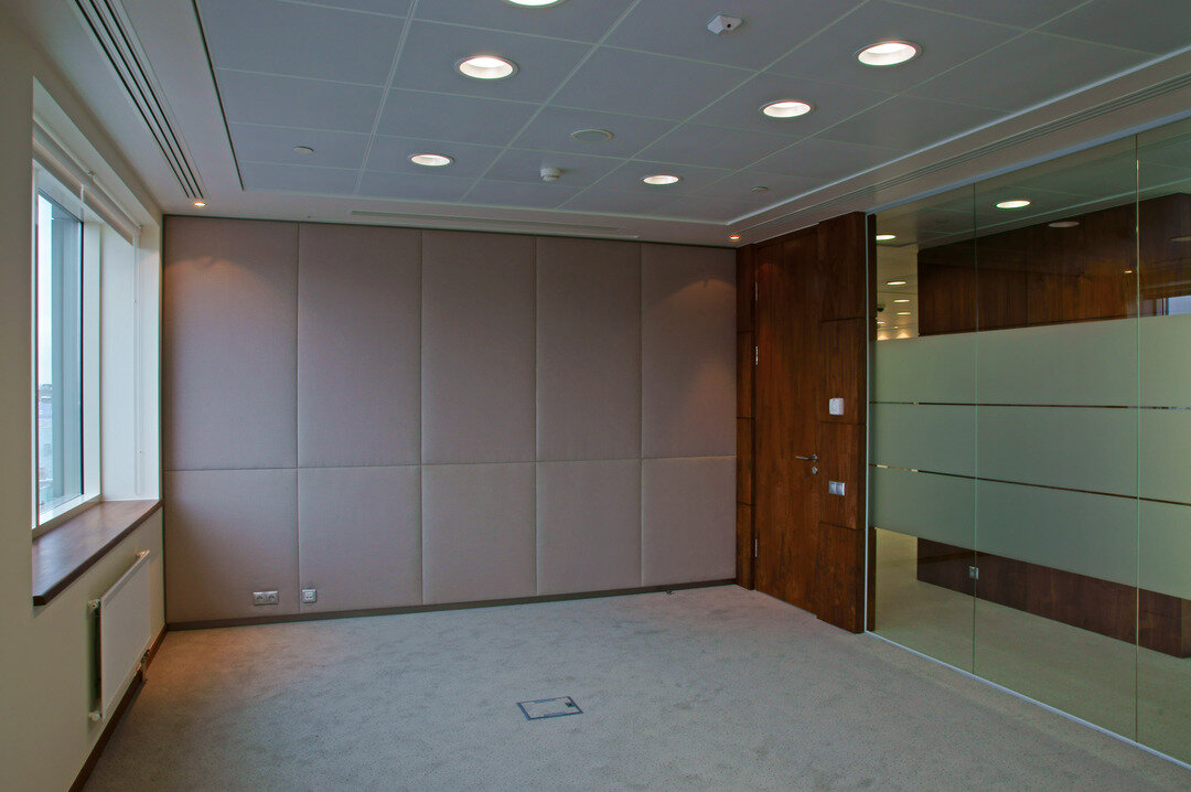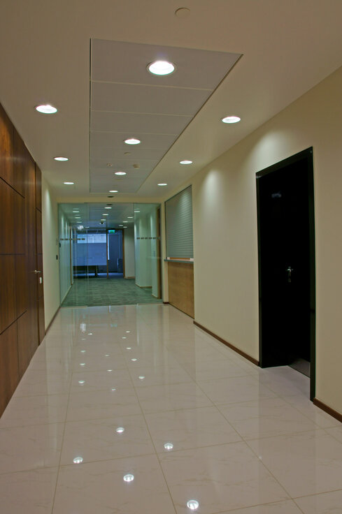 Hogan Lovells is a global law firm that helps companies across the spectrum of their critical business and legal issues. Lindner fitted 170 m² of perforated metal ceiling plates in different sizes with an acoustic fleece line in black to this project. The system is made up of a lightweight, easy to handle and hidden substructure. It can be opened and folded down quickly and easily, allowing for easy access even after installation.