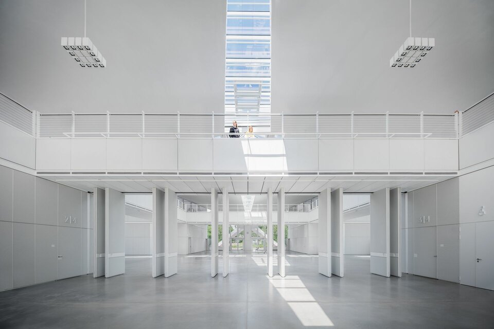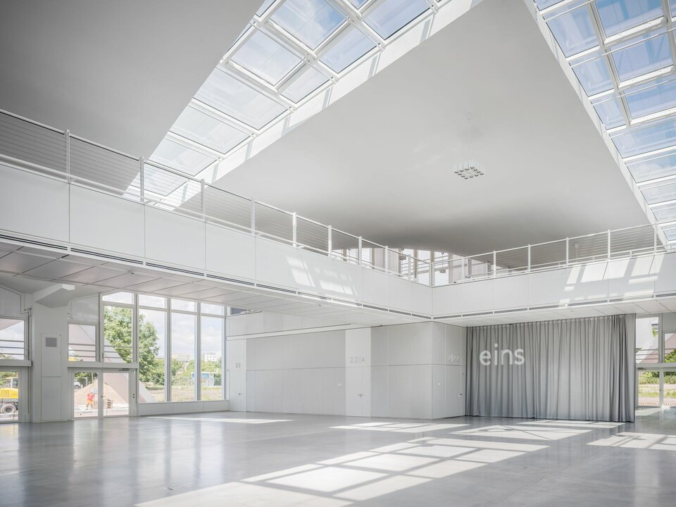 Built in 1969, the Hyparschale in Magdeburg, originally used as a trade fair and exhibition centre, is considered an architectural masterpiece with its striking concrete shell roof and light star and has been a listed building since 1990. After standing empty for over 20 years, the building was renovated by the state capital of Magdeburg and now offers space to host events for up to 500 people. The refurbishment focussed on the characteristic concrete shell roof: the skylights running between the ceiling shells were reopened to bring more light into the interior. Cubes with gallery levels and accessible bridges in the interior also create a flexible room structure without detracting from the imposing impression of the roof.