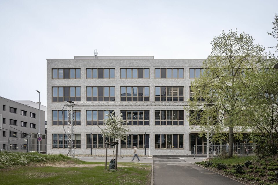 As part of ongoing construction work on the campus of the Johannes Gutenberg University, a new laboratory and office building was created for the Centre for Fundamental Physics (CfP II). In an initial construction phase, the existing underground experimental halls for the new particle accelerator MESA (Mainz Energy-Recovering Superconducting Accelerator) were already converted. The now realised four-storey building provides specialist laboratories and offices for six new research groups as well as for visiting scientists from various disciplines. The building structure includes a cleanroom, a neutron irradiation unit, and a heavy-duty assembly hall for the construction of detector units.