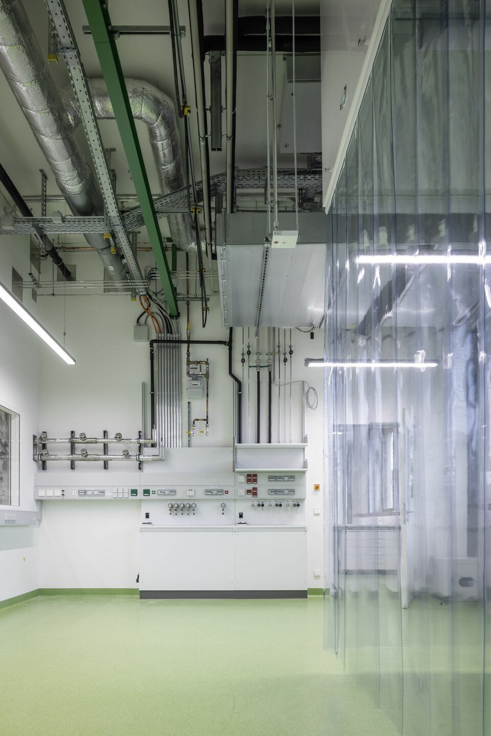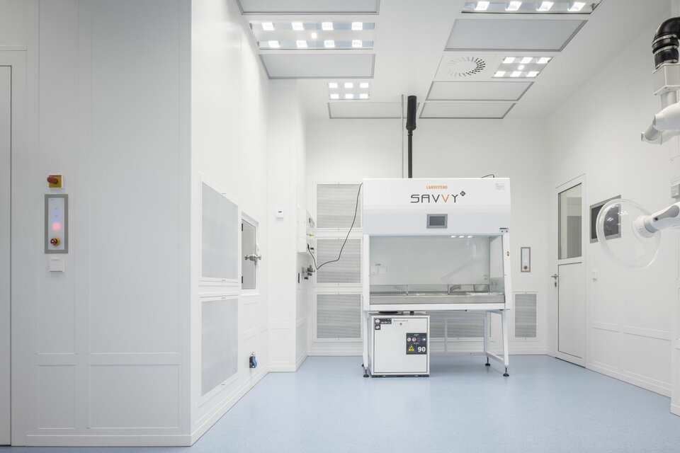 The expansion of cleanrooms and laboratories represented another core competence of the Lindner Group: In the laboratories airlock, wall, and ceiling systems were installed that meet the highest cleanroom standards and ensure a contamination-free environment. Integrated LED lights in the cleanroom ceilings provide optimal lighting and working conditions.