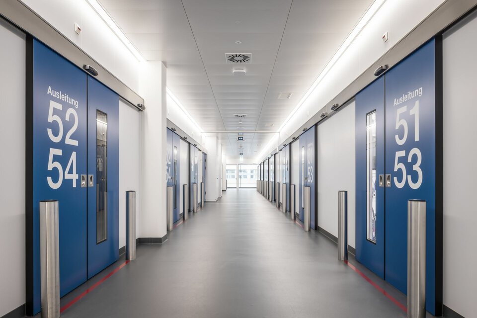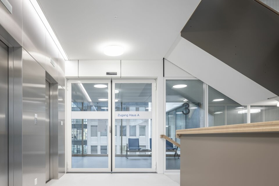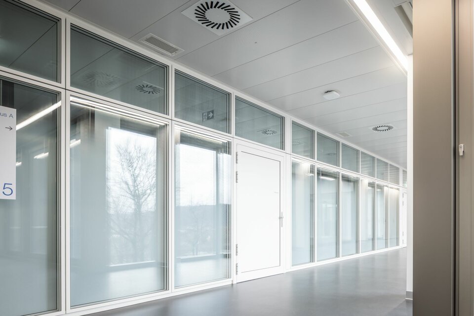 Numerous Lindner products were installed in the hospital: Here, glass acted as a central design element in the interior design. The transparent Lindner Life glass partitions as well as the custom-made sliding windows also allow for discretion if desired thanks to electric and manual blinds. The visual highlight of the hospital are the "artist walls" – glass walls decorated with sandblasted works of art. The installed planum glazings with foil coverings are not only visually impressive, but also offer excellent fire, sound and radiation protection. The numerous glass elements in the clinic are countered by metal wall claddings and wooden door elements.