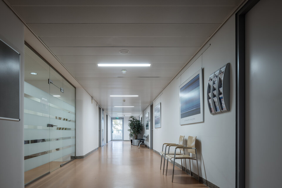 For this purpose, Lindner developed a custom solution that also allowed for the reuse of the existing light fittings, covers, and grids. This not only contributed to resource conservation but also significantly reduced the installation effort. Thanks to these thoughtful retrofit kits, the hospital was equipped with a future-proof and energy-efficient lighting system without disrupting ongoing operations.