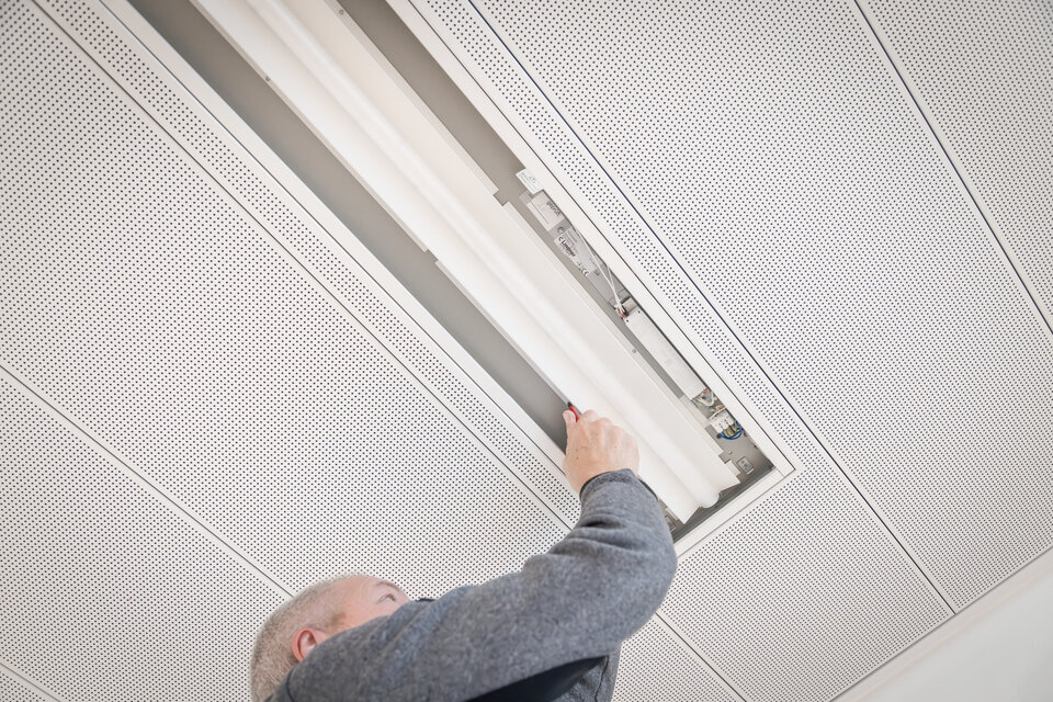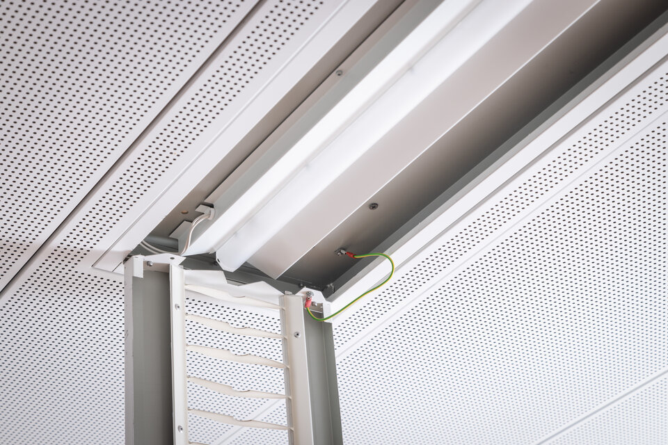 As part of the refurbishment of the Erding site, the Leuchtenfabrik supplied and installed 500 LED retrofit kits to replace the now-banned fluorescent tubes with an energy-efficient solution. The unique aspect of this project: The existing metal and fire protection ceilings were to be fully preserved.