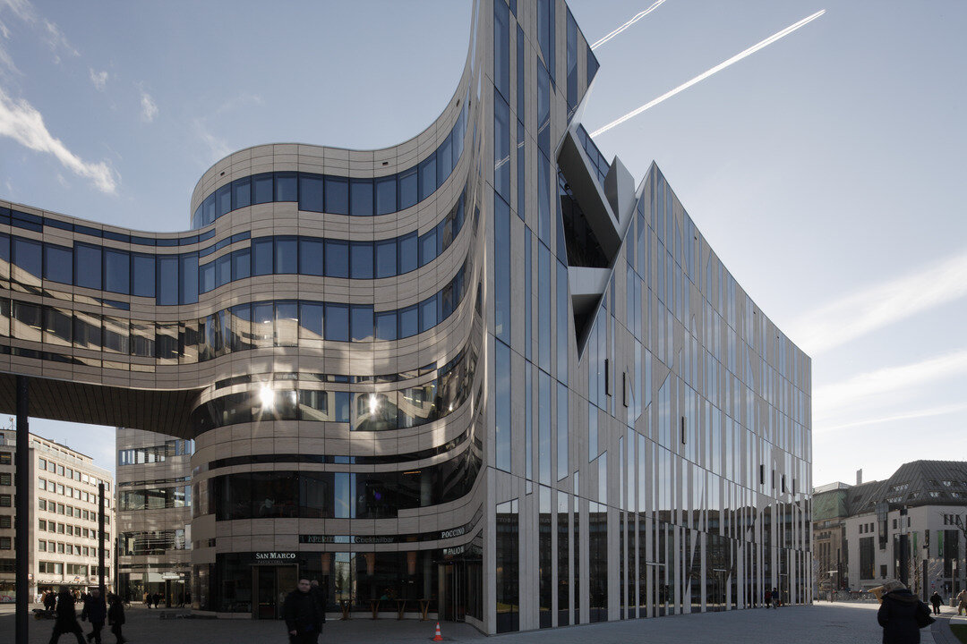 In the centre of Duesseldorf, between Köngisallee, Hofgartenstraße and Schadowplatz, the Kö-Bogen came into existence. It was designed by star architect Daniel Libeskind and it is located on an area of 36,000 m². This premium retail and office structure consists of two 26-feet high buildings and one connecting bridge. It was awarded the MIPIM as the world´s best building in the category urban regeneration on 13 March 2014.