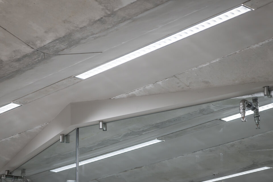 Uneven ceilings had to be levelled with ceiling beams in areas where the glass partitions were installed. Additional challenges in the installation of the glass walls arose at the floor junction, as heating pipes had to be preserved undamaged.