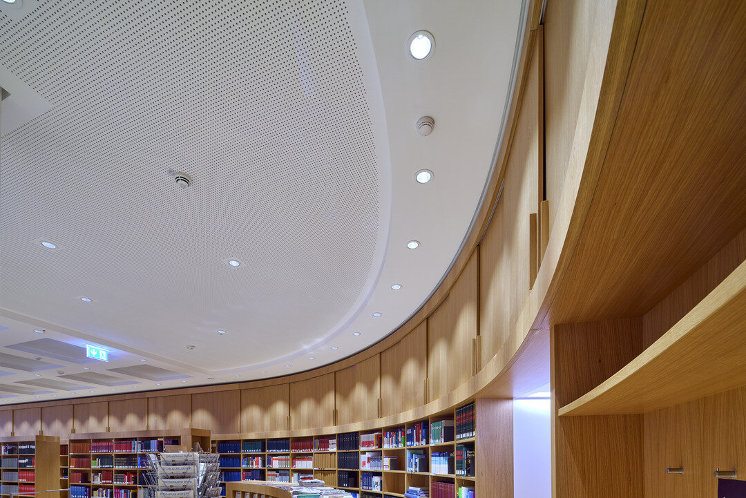 Since 1949, the Maximilianeum placed in the Munich district of Haidhausen is the domicile of the Bavarian Parliament. Numerous redevelopment measures took place in order to adapt the historic building to requirements of a modern parliament building. The library of the Bavarian Parliament is situated in the basement of the old building and serves as information for members of the parliament, parliamentary groups and parliamentary administration. For a comprehensive renovation of the library, the architects and the client decided on Plafotherm® heated/chilled ceilings in special execution. The challenge of the renovation was to find a suitable solution for the old building according to the requirement “antique look in modern guise”.